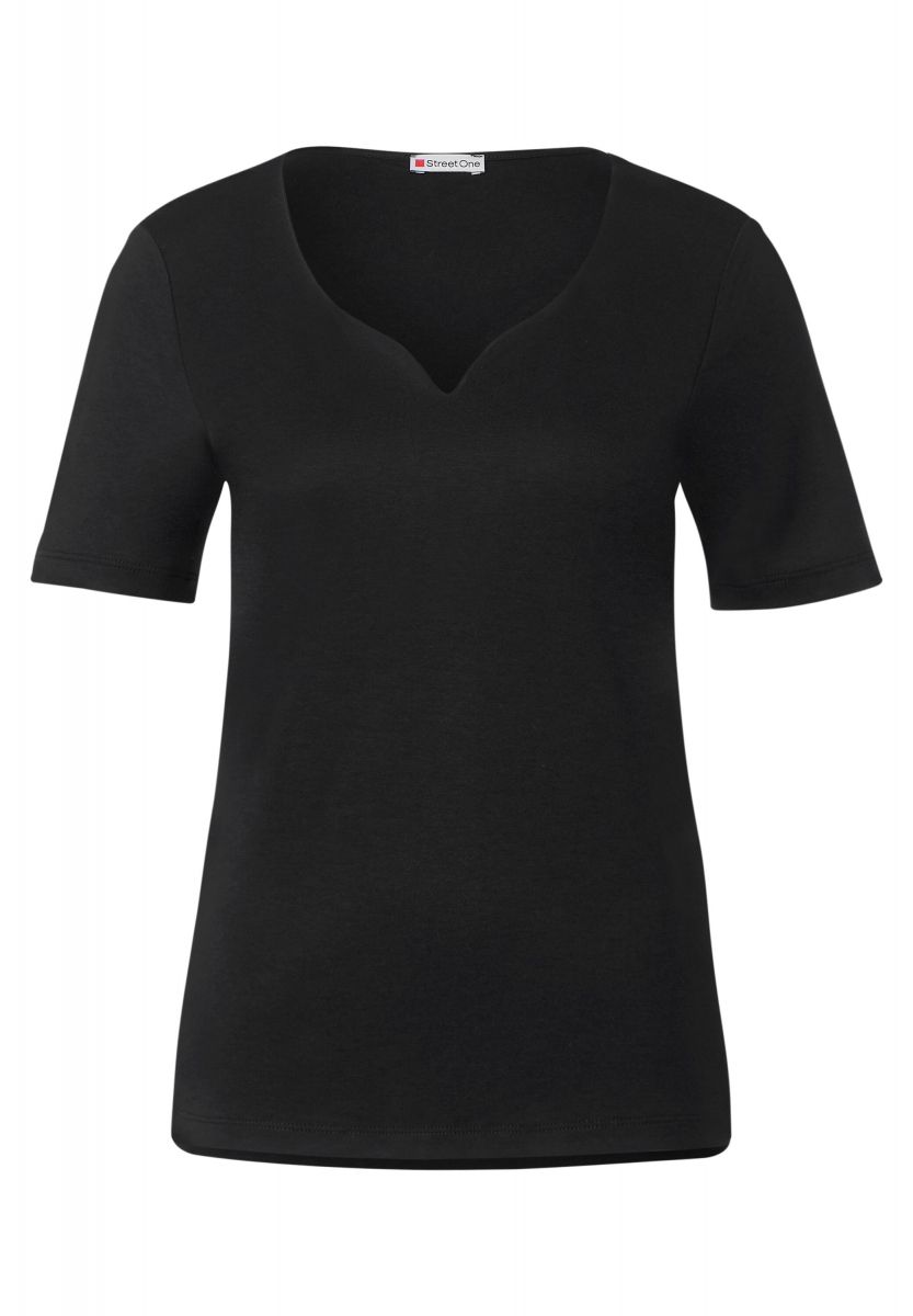 Vêtement Streetwear Confort T-shirt Avec Encolure En Cœur Pour Femmes En Vert T-shirt Manches Courtes Décontracté Le t-shirt avec col en cœur de Street One pour femme est polyvalent. Le mélange de coton et de modal assure un confort optimal, tandis que le décolleté en cœur et l'aspect uni complètent le design Le t-shirt à manches longues de Street One pour femmes séduit par sa structure côtelée féminine et son charmant décolleté en forme de cœur. La qualité douce du coton avec une part de stretch t'offre un confort agréable et fait de ce t-shirt un allrounder polyvalent pour le quotidien et le bureau Placeholder Etam Etam FLO - Print T-shirt Schlussverkauf Geschäft