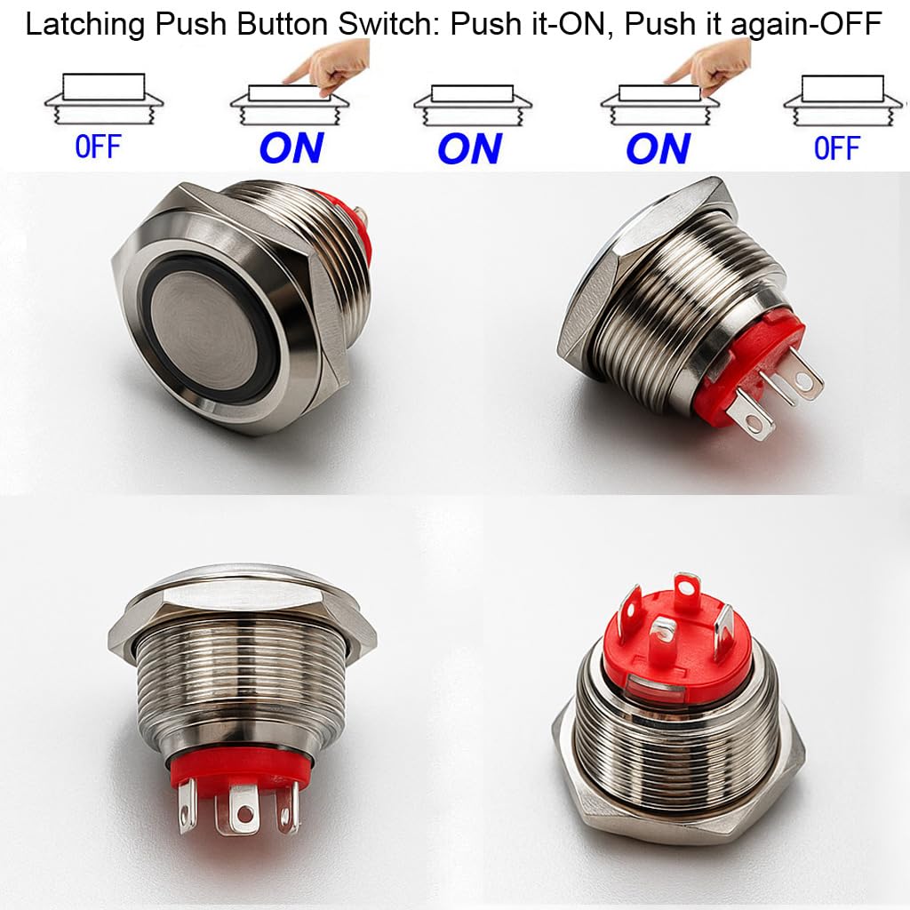 L'interrupteur à bouton-poussoir à LED rouge est conçu avec une LED rouge annulaire et le mode d'éclairage du bouton-poussoir de verrouillage peut être modifié par différentes méthodes de câblage. GUUZI 2 pièces 220V-230V/3A Bouton Poussoir Momentané Etanche Coque en L'interrupteur à bouton-poussoir à LED verte est conçu avec une LED verte annulaire et le mode d'éclairage du bouton-poussoir de verrouillage peut être modifié par différentes méthodes de câblage Fabriqué en acier inoxydable de qualité supérieure. Appuyer sur le bouton pour activer, appuyer et relâcher pour désactiver. Interrupteur anti-vandalisme en acier inoxydable avec anneau LED - courant élevé (20A) - avec étiquettes rétroéclairées | Blocs de fusibles marins... L'interrupteur à bouton-poussoir robuste 220 V est un interrupteur robuste pour une application plus sûre, les appareils électroménagers ou autres appareils nécessitent un contrôle de circuit. Type à verrouillage. Interrupteur 22mm 15A 220V BOUTON-POUSSOIR À VERROUILLAGE Automatique à 3 Broches Rond De Interrupteur Poussoir Verrouillage