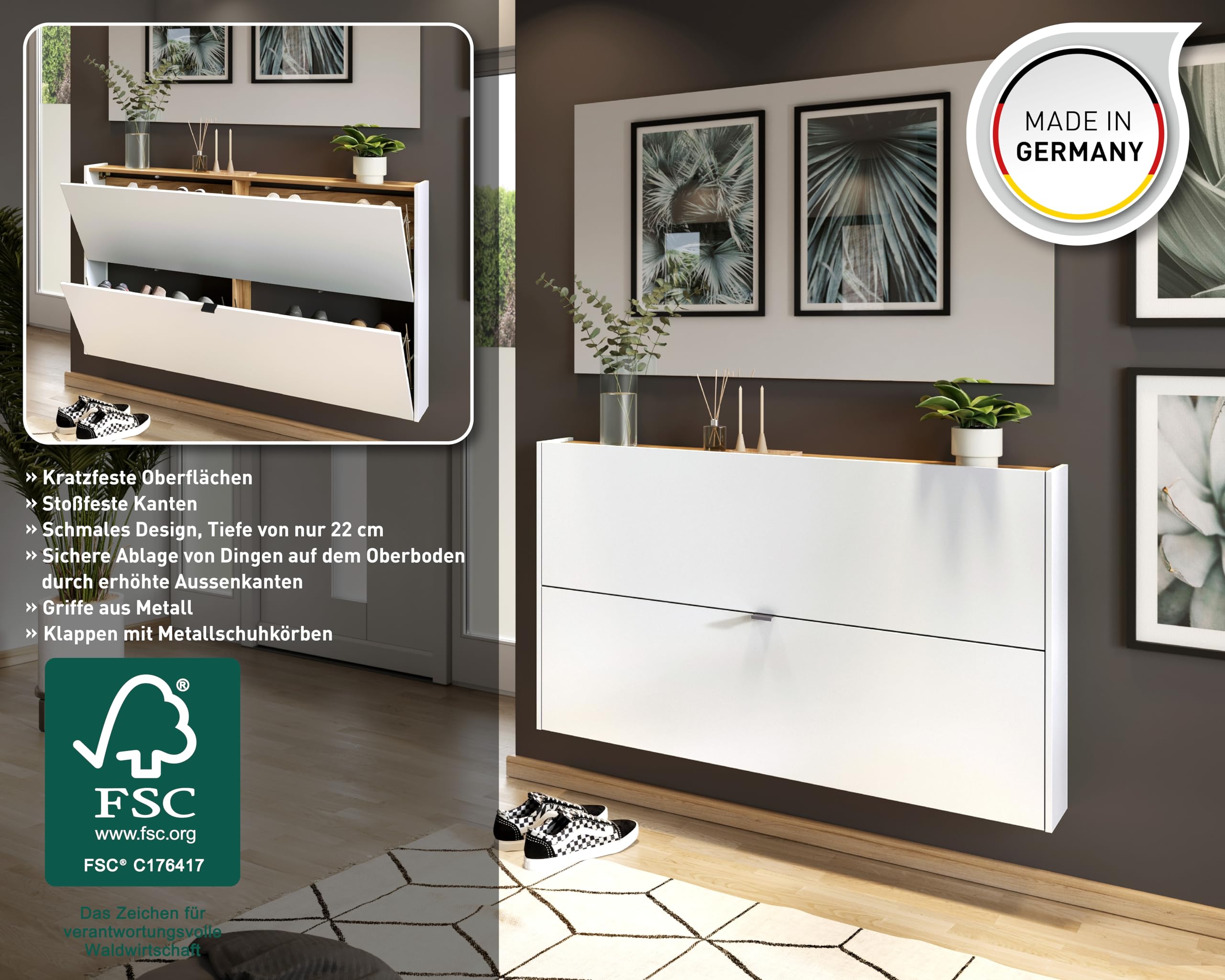 Meuble à Chaussures 3 Portes Coloris Chêne Cambrian/blanc - Longueur 60 X Profondeur 17 X Hauteur 108 1 Cm 87057249 étagère Support 7kg Montage Mural Armoire à Chaussures GW-Telde Blanc Et Chêne Germania | Leroy Merlin Meuble Germania Fabriqué Allemagne Tous les meubles Germania sont développés et fabriqués en Allemagne. Description du produit Germania Armoire à chaussures 4160-633 GW-Ameca , en blanc/chêne de Navarra, certifié FSC, 140 x 83 x 18 cm (LxHxP) Avertissement De Sûreté Suivez toujours les instructions de montage fournies pour vous assurer que l'armoire est solidement fixée au mur. 140 x 83 x 18 cm (LxHxP) Germania armoire à chaussures gw-lissabon chêne et anthracite GERMANIA Corps, façade et dessus en carton aggloméré recouvert de résine mélaminée Germania 4160-633 GW-Ameca Shoe Cabinet, White/Navarra Oak, FSC-Certified, 140 x 83 x 18 cm (LxHxD) : : Home & KitchenIs this blanket right for you? Protection: accidental breakdown/damage. No deductible or waiting period. End of coverage in case of total disaster/destruction/loss of product Available for residents in FR Coverage of the costs of repair/replacement of the insured item... Revêtement de surface résistant aux rayures et durable, avec poignées en métal, faible profondeur - idéal pour les couloirs étroits, certifié FSC - Le FSC s'engage à promouvoir une foresterie responsable dans le monde entier, installation suspendue, montage mural requis Ne surchargez pas l'étagère supérieure, car elle ne peut supporter en toute sécurité que jusqu'à 7 kg.