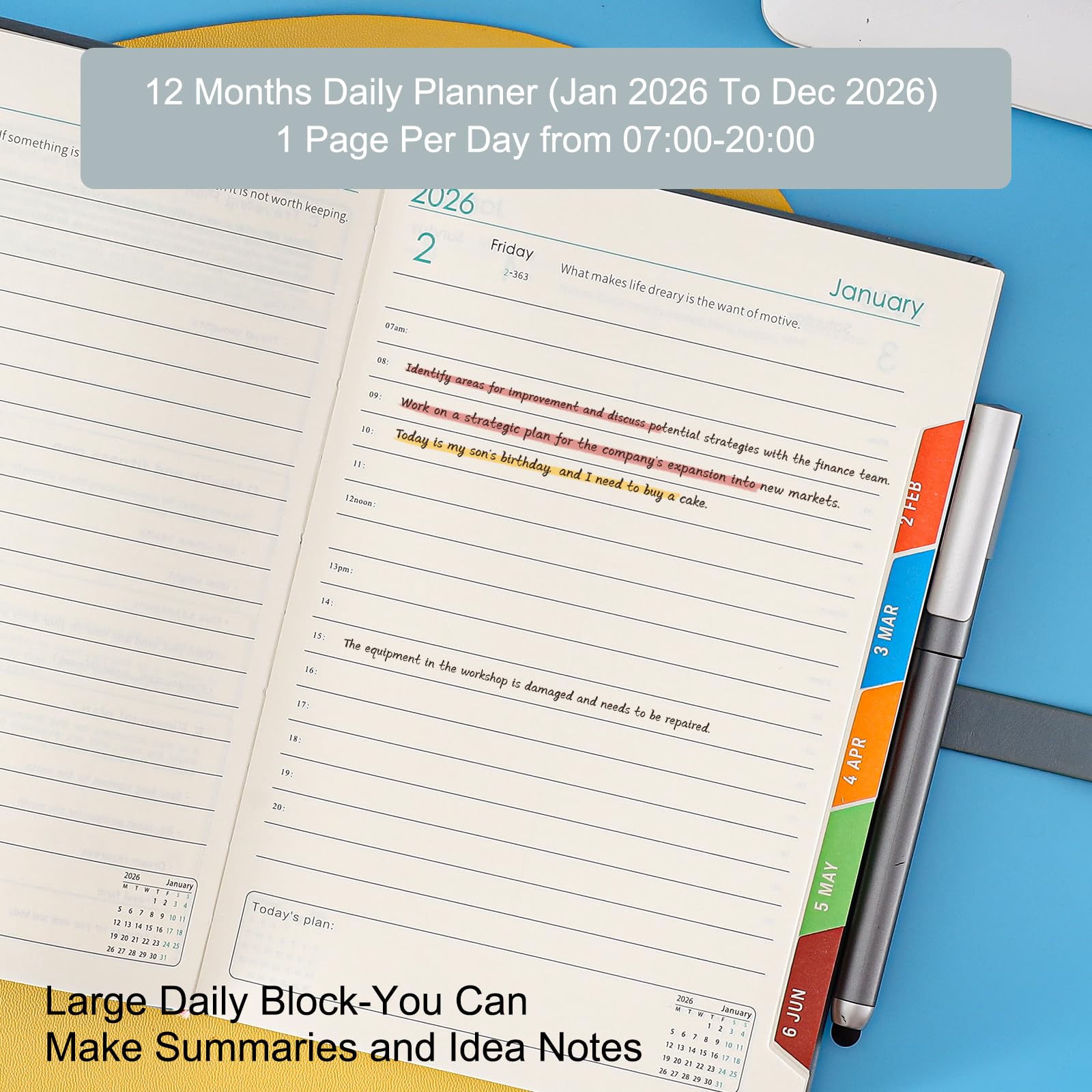 Agenda Moleskine 2025 2026 AT-A-GLANCE SD37613 Agenda Journalier Standard 19,5 X Moleskine Weekly Planner 2025 Planificateur 2026 Avec Onglets Mensuels 2025 Agenda A5 Planificateur Cahier 365 Jours Bloc-notes Quotidien Hebdomadaire Plan Journal Avec Calendrier Index Autocollant Bureau Fournitures Scolaires Cadeau Agenda Professionnel étudiant 2026 Combattez la procrastination, augmentez le bonheur et faites en sorte que chaque jour compte avec le planificateur horaire Agenda 2026 : l'agenda journalier 2026 (format A5 : 14,5 x 21 cm) est un planificateur de travail exceptionnel, intégrant des sections quotidiennes et mensuelles pour hiérarchiser les tâches, les réunions, les rendez-vous, assurant que les professionnels et les entrepreneurs puissent atteindre leurs jalons de carrière avec précision. Sensation agréable au toucher, couverture rigide qui le rend très élégant. Achetez Agenda 2026 format A5 une page par jour, un jour par page, de janvier 2026 à décembre 2026, couverture rigide à bandes, planificateur journalier avec onglets, autocollants pour calendrier 2026 : Calendriers muraux Onglets colorés pour une navigation facile : les onglets mensuels permettent de sauter facilement là où vous devez aller lorsque vous l'ouvrez, un bon design pour les personnes occupées qui veulent suivre les choses jour après jour. Agenda 2024, 2024 Journal,A5 un jour par page, agenda journalier 2024... Caractéristiques pratiques : fermeture élastique, poche de rangement et 1 ruban marque-pages – Fermeture élastique pour garder votre agenda journalier 2026 sûr, sécurisé et durable pour une utilisation en déplacement. Notre agenda quotidien fournit un suivi des heures pour planifier votre emploi du temps quotidien à tout moment.