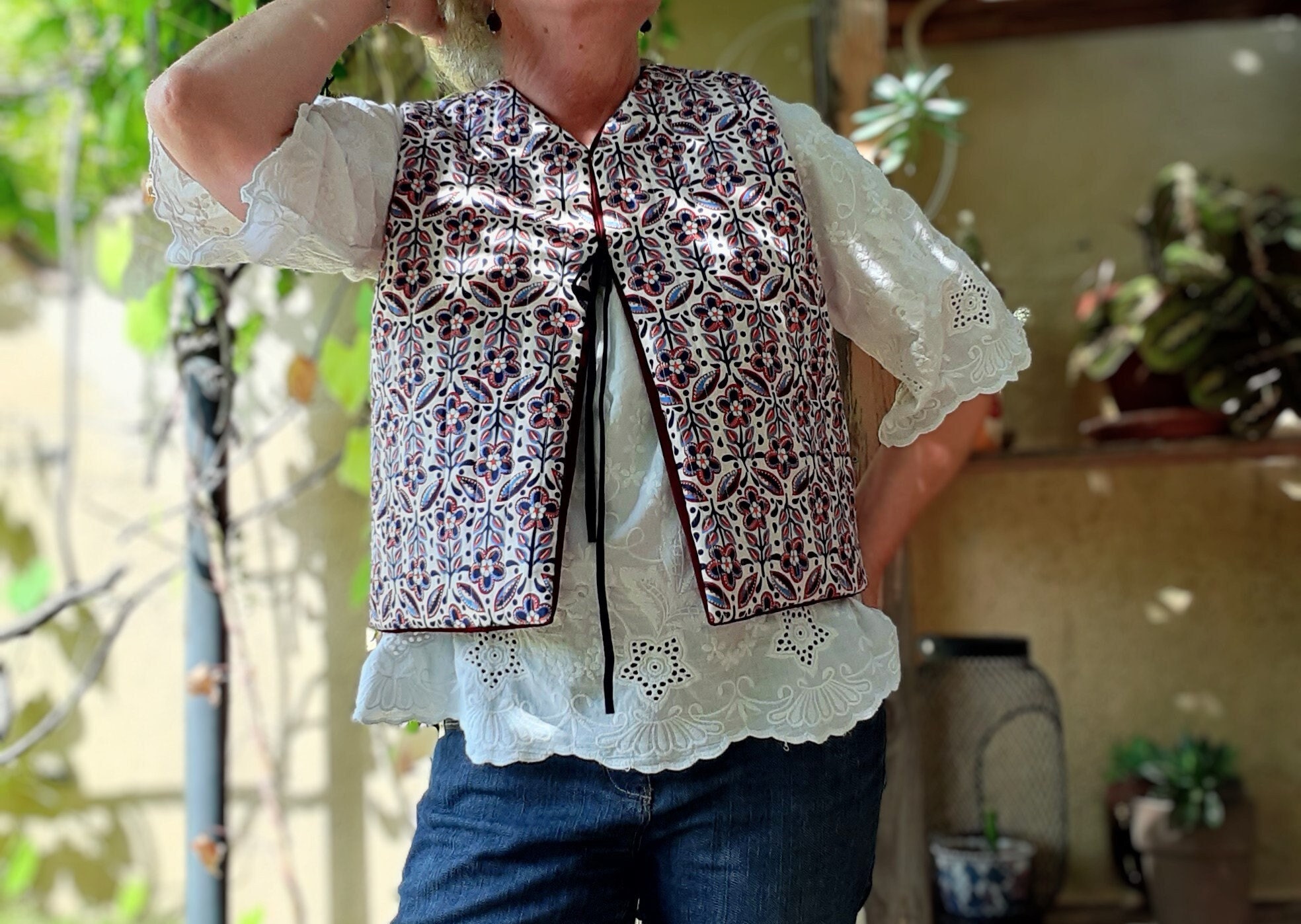 Cardigan Crochet Floral Gilet Femme été En Crochet - Style Bohème Style Bohème Décontracté Manche Ethnique Gilet Sans Manches Brodé Floral Y2K - Style Boho Vintage - Ouverture Devant - Coton/lin été Gilet Brode Floral Femme Gilet Sans Manches Floral C'est aussi un beau cadeau pour les femmes et les filles., ., vêtements. Description : Les femmes de gilet floral brodées rétro sont décontractées et lâches, le style cardigan à gilet court sans manches, et la broderie exquise des embellissements., ., Le gilet de crochet brodé rétro est très adapté à la correspondance avec des hauts, des chemises, des pantalons à taille haute, des shorts, etc. Caractéristiques: Le gilet floral brodé rétro est décontracté et lâche, style de cardigan à gilet court sans manches, l'embellissement de broderie exquis ajoute une touche d'art et de savoir-faire, ce qui en fait un point culminant dans votre garde-robe, dégageant une élégance. Caractéristiques : le gilet floral brodé rétro est décontracté et ample, style cardigan court sans manches, l'embellissement de broderie exquis ajoute une touche d'art et d'artisanat, ce qui en fait un point fort dans votre garde-robe, respirant l'élégance Les vêtements peuvent être égalés. Craquez pour notre gilet sans manches pour femme avec broderies à fleurs, disponible en kaki, rose, blanc, champagne ou bleu. La nouvelle collection printemps été 2025 vous offre un look tendance et original. Du XS au L, ce gilet est parfait pour toutes les morphologies selon votre préférence. Size: The size of the retro embroidered vest is L, the overall size is 46., 5*43., 5 cm / 18., 31*17., 13inch, it can be machine washed or dry cleaned, you can choose according to your preference and suitable size, adding a touch of., Sophistication à votre garde-robe.