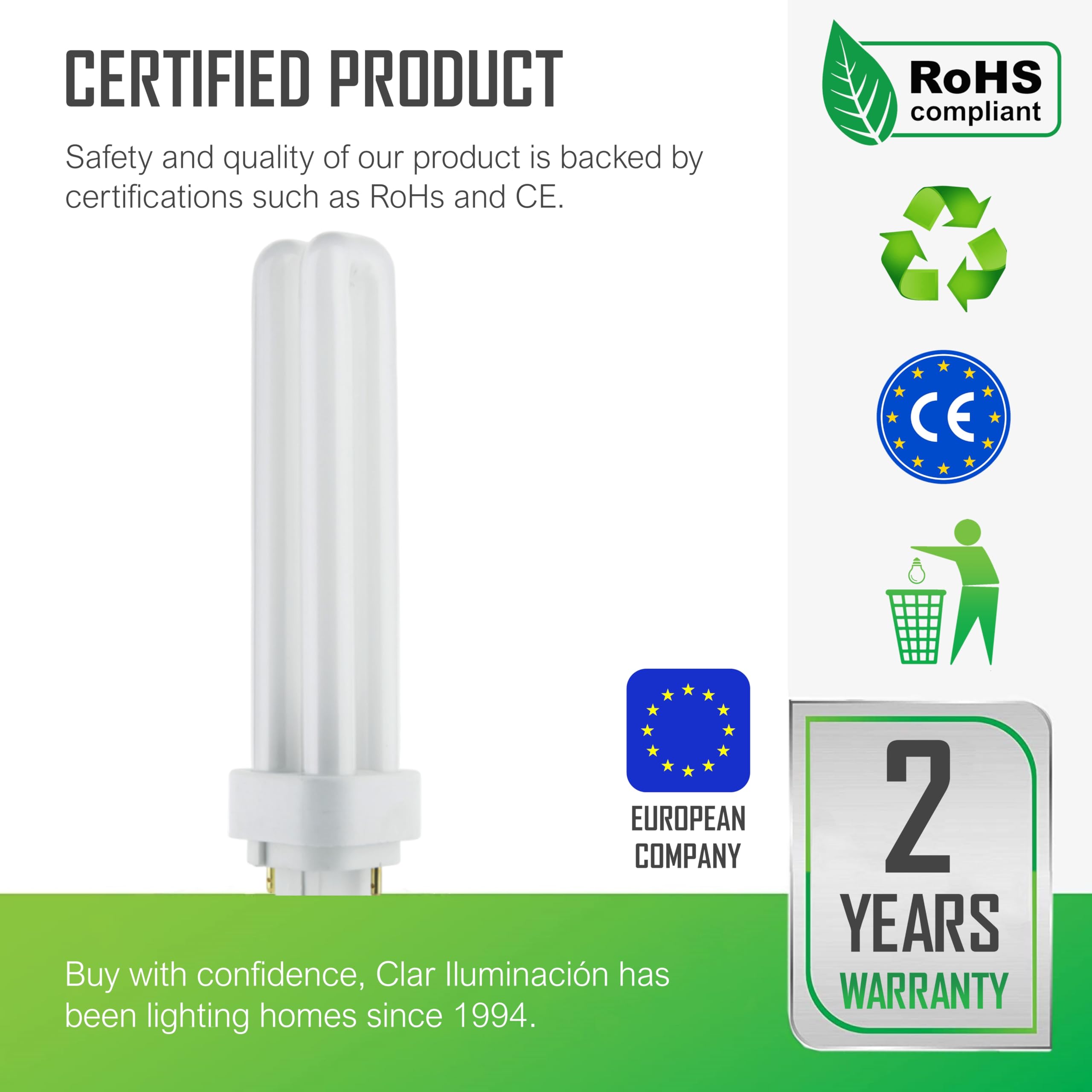 Économie d'énergie et haute performance] Consommation de seulement 11 W et jusqu'à 900 lumens. Remplace les ampoules classiques sans perte de luminosité 【Design compact】 Dimensions : 31 x 167 mm, idéal pour les appliques murales ou les plafonniers. Philips Master Pl-c 26w/840/4p CLAR Ampoule Fluorescente Gemini D 18W 4000K G24d-2 Lumière Blanche Neutre 2 Broches CFL Technique Remplacement Haut Flux Tube Compact Éclairage Intérieur Professionnel Cuisine Bureau Atelier Précis Ampoule CLAR Gemini S La lampe fluorescente compacte verticale Gemini CLAR - Gemini S 9 W 4000 K G23 blanc neutre offre un rendement lumineux élevé et une excellente efficacité énergétique. 【Durable et fiable】 Des matériaux de haute qualité garantissent une longue durée de vie. 【30 ans d'expérience et un excellent service client】 CLAR éclaire les maisons et les appartements depuis 1994 et compte 30 ans d'expérience. Cantharellus corps de lampe À led lumiÈre naturelle 4000k 20w diamÈtre... Lampe de table LED MOKA en aluminium marron 5W 4000K (Lumière 【Économie d'énergie et haute performance】 Ne consomme que 9 W et offre jusqu'à 600 lumens. Peu encombrant et fonctionnel. Avec ses 9 W et sa lumière blanc neutre 4000 K, elle offre un éclairage agréable dans les espaces résidentiels, de bureaux et commerciaux.