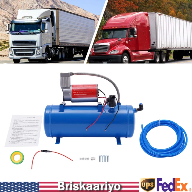 Contenu de la livraison : 1 compresseur d'air., 1 tuyau. EN STOCK : VEVOR Compresseur deAir Electrique pour Voiture Reservoir 6 L, Gonfleur Pneus Voiture 12 V DC, Compresseur deAir Multifonctionnel 120 psi, Pompe Gonfleur Voiture Klaxon de Train, Gonflage des Pneus, QCLBQB00000000001V0 pas cher. Livraison rapide partout en France Grand réservoir : sa capacité de réservoir atteint 6 L/1,6 Gal, ce qui peut fournir une pression suffisante pour vos pneus ou vos klaxons d'air et vous aider à éviter les problèmes de ravitaillement fréquent. 【Conduite sûre】: elle est automatiquement coupée à 8 bars et s'ouvre automatiquement à 6 bars pour garantir que vos pneus de voiture sont maintenus dans le bon état de pression et protègent votre sécurité de conduite. 【Faible bruit】: Le moteur à noyau en cuivre produit moins de frottement, de vibrations et de bruit pendant le fonctionnement, ce qui crée un environnement confortable pour vous et n'affecte pas votre conduite. 【Haute performance】: il adopte un moteur à noyau en cuivre avec une puissance élevée et un fonctionnement stable, qui peut résister à l'épreuve du temps et de la température, qu'il soit froid ou chaud. Charge maximale : Pression de fonctionnement : 150 psi. VEVOR Kit de Klaxon 4 Trompettes 150 dB Klaxon de Voiture avec Compresseur deAir 110-160 psi Reservoir deAir 10 L Avertisseur Sonore Pneumatique Universel Dimensions du produit : 38 x 14 x 30 cm Dimensions du colis : 49,5 x 34 x 20 cm., Poids net : 5,2 kg., Poids brut : 6 kg. Caractéristiques : Couleur : bleu. Longueur du tuyau : 3,8 m. COMPRESSEUR D'AIR GONFLAGE de Pneu 150psi DC 12V avec réservoir 6 L... Portatif Kit De Système De Compresseur De Klaxon D'air Intégré, 150 PSI, 12V DC, Compresseur D'air Pour Camion, Voitures, SUV, Bateau, Tracteur, RV, Véhicule Tout-terrain Compresseur à Air Capacité du réservoir : 6 l/1,6 Gal.