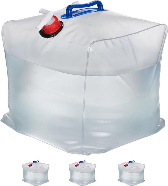 bidon eau 20l, Set de 4 bidons pliables et portables pour eau potable Bidon 20 Litres Avec Robinet Bidon Robinet Sans BPA Jerrican Eau Pliable FENERO 10L/20L - Bidon Camping Avec Robinet - Qualité Alimentaire Sans BPA équipement Randonnée Bidon Eau Chaude 20 Litres Bidón plegable de 20 l, bidón de agua plegable, depósito de agua de PVC, tanque de agua portátil para acampar con grifo para picnic al aire libre senderismo Bidon pliable pour eau osmosée 10L 7,25