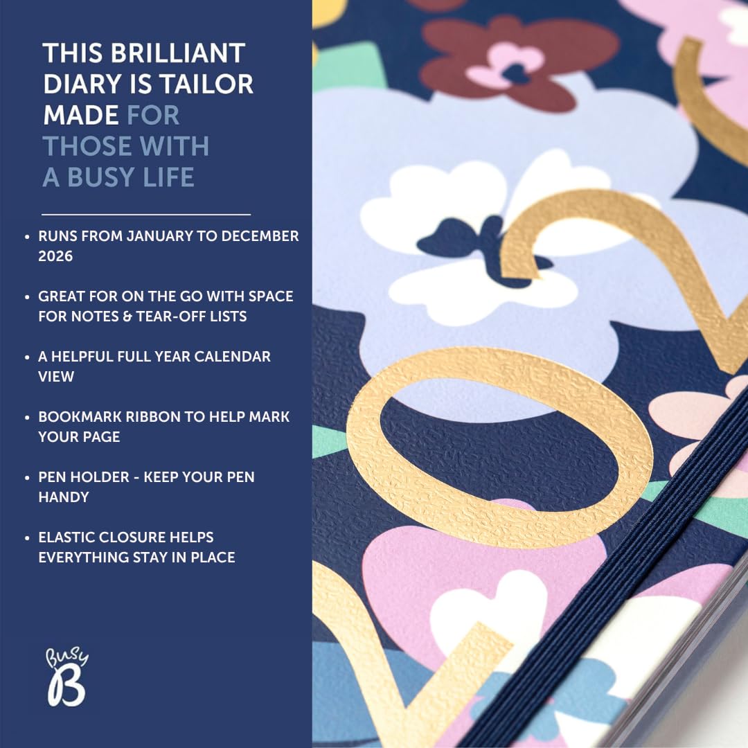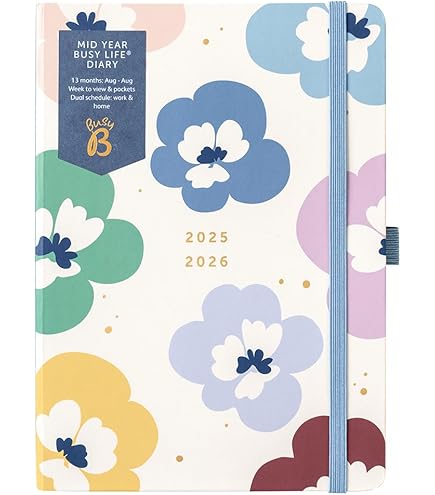 S'étendant de janvier à décembre, il est rempli de pages aux motifs magnifiques qui égayeront vos séances de planification. Trois poches pratiques permettent de tout garder en sécurité, tandis que la fermeture élastique garantit le maintien en place du contenu. Cet agenda Busy B 15 x 21,5 cm est rempli de détails ingénieux pour vous aider à rester organisé. AGENDA SEMAINIER - Ne perdez pas de vue vos objectifs à long terme grâce à l'agenda annuel. DESIGN ÉLÉGANT - Rehaussez vos essentiels de bureau avec ce bel agenda. Diary Day Per Page Busy B - Planificateur Semainier Busy Life - 2025 - Rayures - Agenda A5 Avec Double Emploi Du Temps, Calendrier Annuel & Pochettes Pour Stylos Agenda 2026 A5 PLANIFICATION DU QUOTIDIEN - Planifiez votre semaine d'un côté et prenez des notes de l'autre. Sa couverture rigide au motif floral multicolore ornée de détails dorés lui confère un look professionnel, tandis que la fermeture élastique permet de le ranger en toute sécurité dans votre sac ou sur votre bureau. Avec une boucle de stylo, un ruban marque-page et une fermeture élastique, vous serez toujours prêt à affronter les événements de la journée. Les trois poches sont idéales pour ranger les documents importants. Il est rechargeable, avec une couverture souple en simili cuir et un fermoir bouton. En plus : onglets mensuels, pages de notes, carnets d'adresses, traqueur d... Gardez le contrôle de votre emploi du temps grâce à cet élégant agenda A5 de Busy B. Avec ce charmant agenda Busy B, l'année 2026 sera la plus organisée de votre vie. Cet agenda vous permet de rester maître de la situation grâce à une présentation claire des rendez-vous et des tâches, vous aidant ainsi à rester productif et équilibré. Le format semainier vous permet de visualiser votre emploi du temps en un coup d'œil, tandis que la page de notes adjacente offre de la place pour les listes de choses à faire et les rappels. Busy B - Agenda 2026 - Planificateur semainier A5 avec listes de tâches à effectuer et pages de notes pour le travail, l’école ou le bureau - 3 pochettes et planificateur annuel - Floral Busy B Agenda familial 2026 Planificateur semainier A5 avec 5 C'est le compagnon idéal pour une année 2026 bien organisée et stylée.