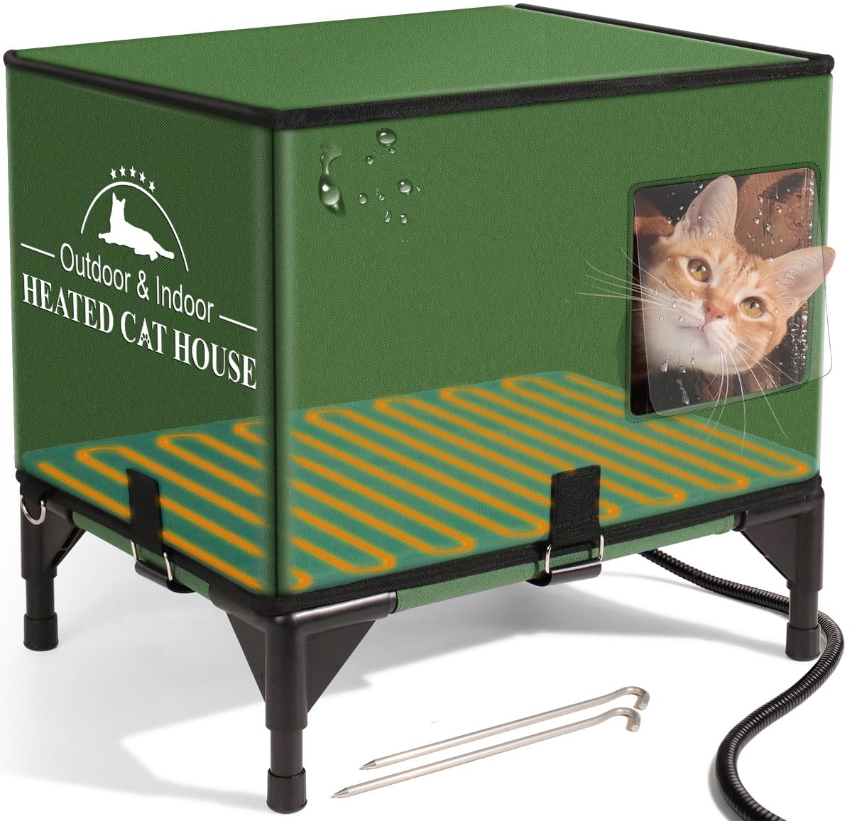 Isolation exceptionnelle pour un confort hivernal : fabriqué avec quatre couches d'isolation de qualité supérieure, cet abri pour chat extrêmement isolé garantit que vos animaux de compagnie restent super au chaud pendant les journées d'hiver les plus froides. Il est également équipé de deux sorties, permettant aux chats de s'échapper rapidement en cas de besoin et d'améliorer la sécurité. L : 65 x 42 x 30 cm. Utilisation polyvalente pour les chats errants et communautaires : disponible en plusieurs tailles, cette maison d'extérieur pour chat est parfaite pour les chats sauvages et errants ainsi que les petits animaux. M : 53 x 33 x 30 cm. Niche surélevée et chauffante pour chat,SucceBuy petite,verte Le design pratique à ouverture rapide dispose d'une boucle de fermeture sécurisée pour un accès facile, vous permettant de nettoyer l'intérieur avec facilité et de passer plus de temps de qualité avec vos amis à fourrure. Cette maison chauffante pour chat est équipée d'un auvent Oxford 900D entièrement amélioré et d'une base surélevée de 11,4 cm qui garde vos chats au sec et en sécurité, même par temps difficile. Imperméable et isolé : le toit de la maison d'extérieur pour chat pour l'hiver est conçu avec cinq couches de matériau, y compris une couche de matériau en maille imperméable, ce qui améliore efficacement la performance d'étanchéité Niche Isolée Surélevée Maison Chauffante D'extérieur Pour Chat – Maison Pour Chat Sauvage Amovible Avec Fenêtre Ouverte Pour Intérieur Et Extérieur, Résistante Aux Intempéries En Hiver – Abri Pour Chat Avec Coussin Niche Chat Extérieure Le grand auvent protège efficacement vos chats errants bien-aimés de la pluie et de la neige, leur offrant une porte d'évacuation confortable dans un refuge sécurisé. En outre, les propriétés coupe-vent et imperméables de la maison pour chat garantissent une utilisation stable dans toutes les conditions météorologiques, offrant un refuge sûr pour les chats errants, qu'ils soient confrontés à des vents violents ou à de fortes pluies. Maison chauffante pour chat : notre maison d'extérieur GDGZT est conçue pour fournir aux chats d'extérieur un environnement confortable et chaud pendant l'hiver Utilisations spécifiques du produit : extérieur. Le coussin chauffant intégré garantit une expérience agréable pour vos chats en plein air, ce qui en fait un ajout essentiel à l'installation de tout amateur de chat. Cette niche pour chat dispose d'un design surélevé unique qui empêche efficacement l'humidité du sol, gardant votre compagnon félin bien-aimé à l'abri du froid et de l'humidité. C'est un abri idéal pour les balcons, les porches, les granges, les fermes, les jardins et les parcs, ce qui en fait un incontournable pour tous ceux qui s'occupent des chats communautaires ayant besoin de protection.