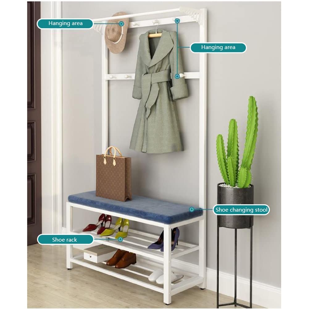 Description du produit Tohomeor Porte-manteau avec armoire à chaussures, arbre à grenier autoportant avec banc, 5 niveaux en panneaux de particules et 4 tiroirs pliables, avec 9 crochets, pour couloir, salon, chambre à coucher Avertissement De Sûreté Veuillez fixer ce porte-vêtements au mur pour créer un environnement d'utilisation sûr Ce porte-manteau avec rangement à chaussures est un meuble multifonctionnel qui combine élégance et praticité. Conçu en panneaux MDF de haute qualité et avec une structure en acier épais, il offre une résistance et une durabilité exceptionnelles Idéal pour ranger tous les ustensiles lors de vos déplacements Garde les entrées, couloirs, chambres et salons organisés et bien rangés. Nos produits sont solides et durables. Meuble Dentree Arbre D'entrée 4 En 1, Porte-manteau Avec Banc à Chaussures, Porte-manteau Autonome Avec étagère à Chaussures à 2 Niveaux Et 10 Crochets Pour Entrée, Couloir, Rangement De Chaussures Pour 6 à 8 Armoire Penderie Espace de rangement généreux : avec 2 niveaux pour les vêtements et 9 crochets robustes, ce porte-manteau offre une flexibilité maximale. Stable et bien pensé : fabriqué en bois de haute qualité et avec un cadre en métal renforcé pour une grande capacité de charge. Sécurité anti-basculement incluse pour plus de stabilité. 4 étagères ouvertes de chaque côté offrent de la place pour les sacs, les manteaux, les écharpes, etc. Porte-manteau avec banc et armoire à chaussures blanc Banc porte-manteau pratique avec assise : le banc à chaussures intégré avec espace de rangement permet de l'enfiler et de l'enlever facilement. Découvrez par exemple notre modèle Vasagle meuble d’entrée, porte-manteaux, avec banc et étagère à chaussures, 9 crochets amovibles, tringle, 32,2 x 64 x 180 cm, pour entrée, chambre, style industriel, grège et noir : un best-seller, apprécié pour ses qualités de fabrication