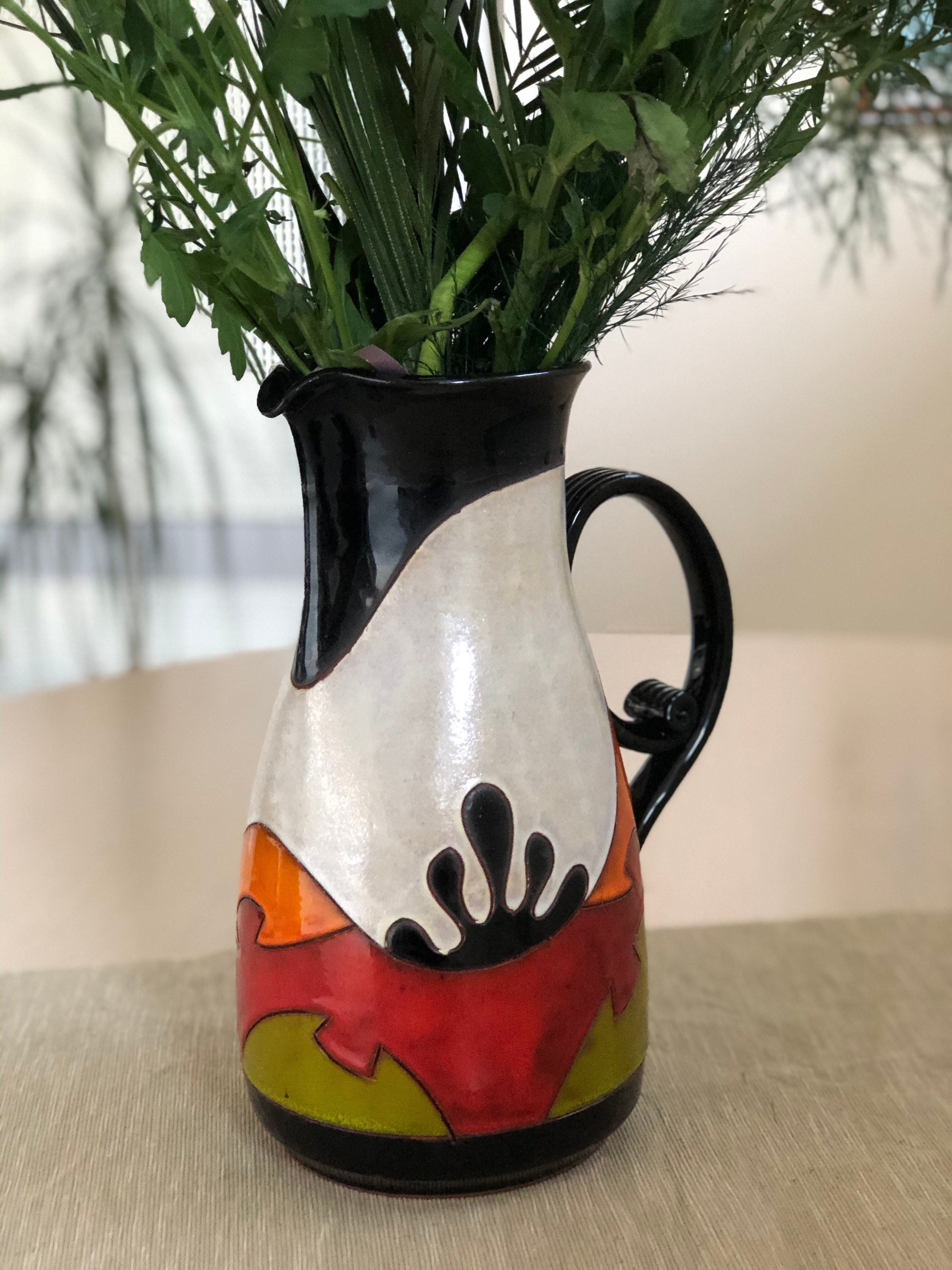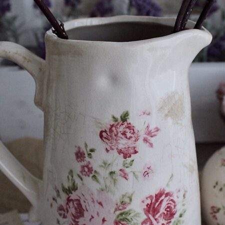 Pichet à Eau En Céramique Pichet De Jardin, Pot De Fleur Peint à La Main à L 'intérieur Adapté For Servir De L'eau Froide, Du Café, Du Lait Et Des Jus De Fruits