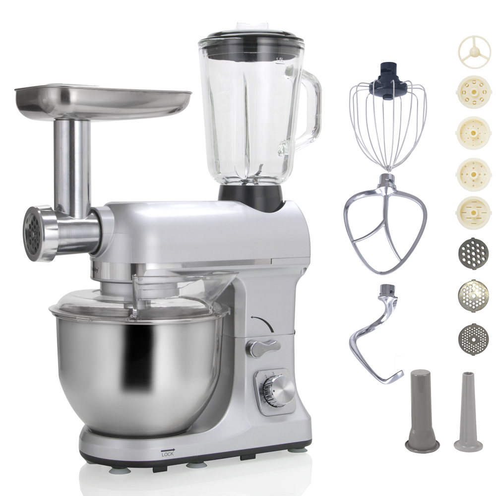 FACILITÉ D'UTILISATION: Assemblage et nettoyage simples, avec des pièces amovibles pour un entretien pratique et rapide MULTIFONCTION: Hachoir polyvalent pour viande, légumes, fromages et herbes, avec des lames en acier inoxydable de haute qualité DESIGN ERGONOMIQUE: Construction en acier inoxydable avec poignée de transport pratique et base antidérapante pour une stabilité optimale Hachoir Multifonction Mini-robots Et Hachoirs - Tristar Robot De Cuisine Multifonction MX-4823, Bol Hachoir, Lame Pour Robot Cuisine Winning Star Hachoir Électrique, Robot Culinaire Multifonction, 6L, 1000W, Argent et Noir PUISSANCE PERFORMANTE: Moteur robuste de 1000W pour un hachage efficace et rapide des aliments, idéal pour une utilisation quotidienne Découvrez le robot culinaire multifonction Winning Star, un appareil puissant de 1000W qui révolutionnera votre cuisine. Avec son grand bol de 6L en acier inoxydable, il est parfait pour préparer des repas pour toute la famille. Ce hachoir électrique polyvalent vous permet de hacher viandes, légumes et aromates en quelques secondes Robot Multifonctions 6 en 1 - KNKA - 8L - Noir - 1500W - Hachoir à Viande - Mixeur Blender