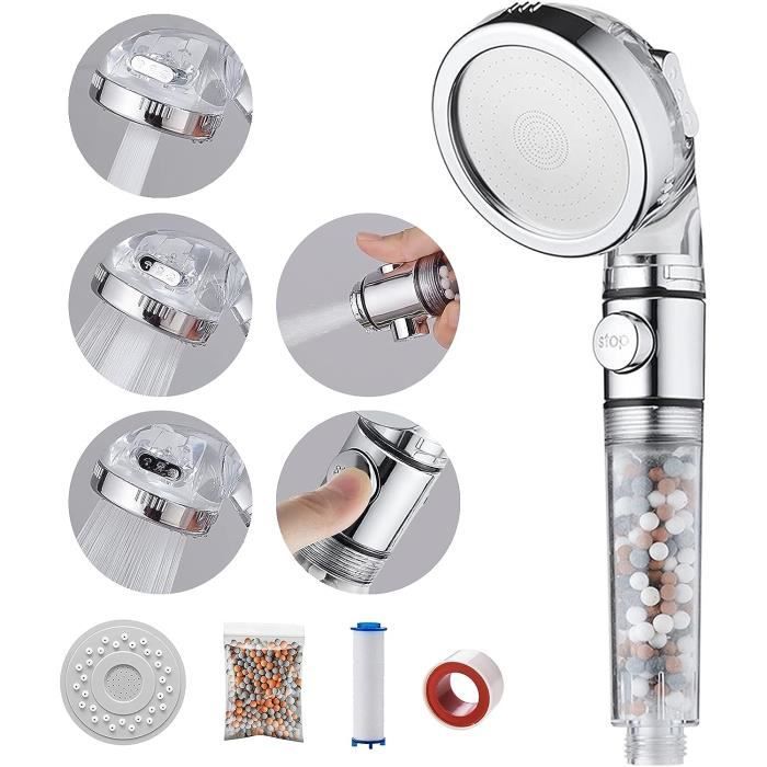 Il suffit de visser le tuyau de douche standard sur cette poignée de douche et de le serrer à la main. Chaque mode est une expérience de douche spéciale pour vous. En même temps, l'eau est économisée. 3 réglages + fonction pause ON/OFF Douchette Moderne Cascade Salle De Bain, Douchette À Main Avec Jets Passez facilement d'un mode à l'autre en appuyant sur le bouton à bascule de la douche à main. Filtre PP- Coton En plus de la boule filtrante, nous incluons également un élément filtrant en coton PP. Profitez d'une douche luxueuse avec la tête de douche XIAOMI, ofant une pression élevée et trois modes d'arrosage réglables. Sa brosse de massage intégrée et son design de robinet de pluie versez une détente totale Plaque de rechange en plastique avec de plus grandes buses. Caractéristiques : Filtration avec filtre ionique Il est également idéal pour protéger la peau délicate des bébés. Un seul bouton pour arrêter l'eau Lorsque vous vous lavez les cheveux pour prendre une douche, vos yeux sont à peine ouverts, ce qui vous empêche de toucher facilement l'interrupteur de la pomme de douche. Particulièrement adapté pour les adultes, les personnes handicapées, les tout-petits et les bébés, peut être utilisé comme pommeau de douche à fermeture éclair. Amovible pour un nettoyage facile Plaque de remplacement incluse Pommeau de douche avec filtre économie d'eau - TRAHOO - Douchette... Les outils d'installation et de plomberie ne sont pas nécessaires. Pommeau Douche Filtre Anti-calcaire Pomme De Douche TRAHOO Avec Filtre à Ions Et Anti-calcaire, 3 Modes Pommeau Douche Avec Bouton Pause Plaque de remplacement incluse Les goûts diffèrent, y compris en ce qui concerne l'expérience de la douche. Contenu de l'emballage : Douche filtrante * 1, PP Coton * 1, Boule filtrante * 1, Plaque de rechange * 1, Ruban de téflon *1, Note : 1., la fonction pause ne peut être utilisée que comme une suspension de la fonction de la douche, n'oubliez pas de fermer la vanne après la démonstration, sinon votre salle de bain sera pleine d'eau., 2., après avoir reçu la douche et constaté qu'il y a de l'eau dedans, c'est normal, car nous la testons avant l'expédition., 3., Pour une performance optimale, la filtration doit être changée tous les 3 à 6 mois. Design amovible La conception amovible de la pomme de douche permet de nettoyer facilement et durablement les incrustations accumulées. L'eau est fine, dense et uniforme, de sorte que la peau est douce et confortable. Il est meilleur pour la santé des cheveux et de la peau. Filtre 99% de sable, de rouille, de chlore, de pollution et d'odeurs désagréables. Éliminez jusqu'à 99 % du chlore nocif et de ses vapeurs, réduisez les impuretés résiduelles dans l'eau. En un tour de main, vous pouvez remplacer le disque en acier inoxydable et profiter d'une expérience de douche complètement différente. Description du produit Les impuretés présentes dans l'eau du robinet assèchent souvent notre peau et provoquent un déséquilibre des glandes sébacées. La sécrétion d'huile sera réduite et la viabilité des cellules sera augmentée. Amovible pour un nettoyage facile. Le PH de l'eau régulera l'équilibre.