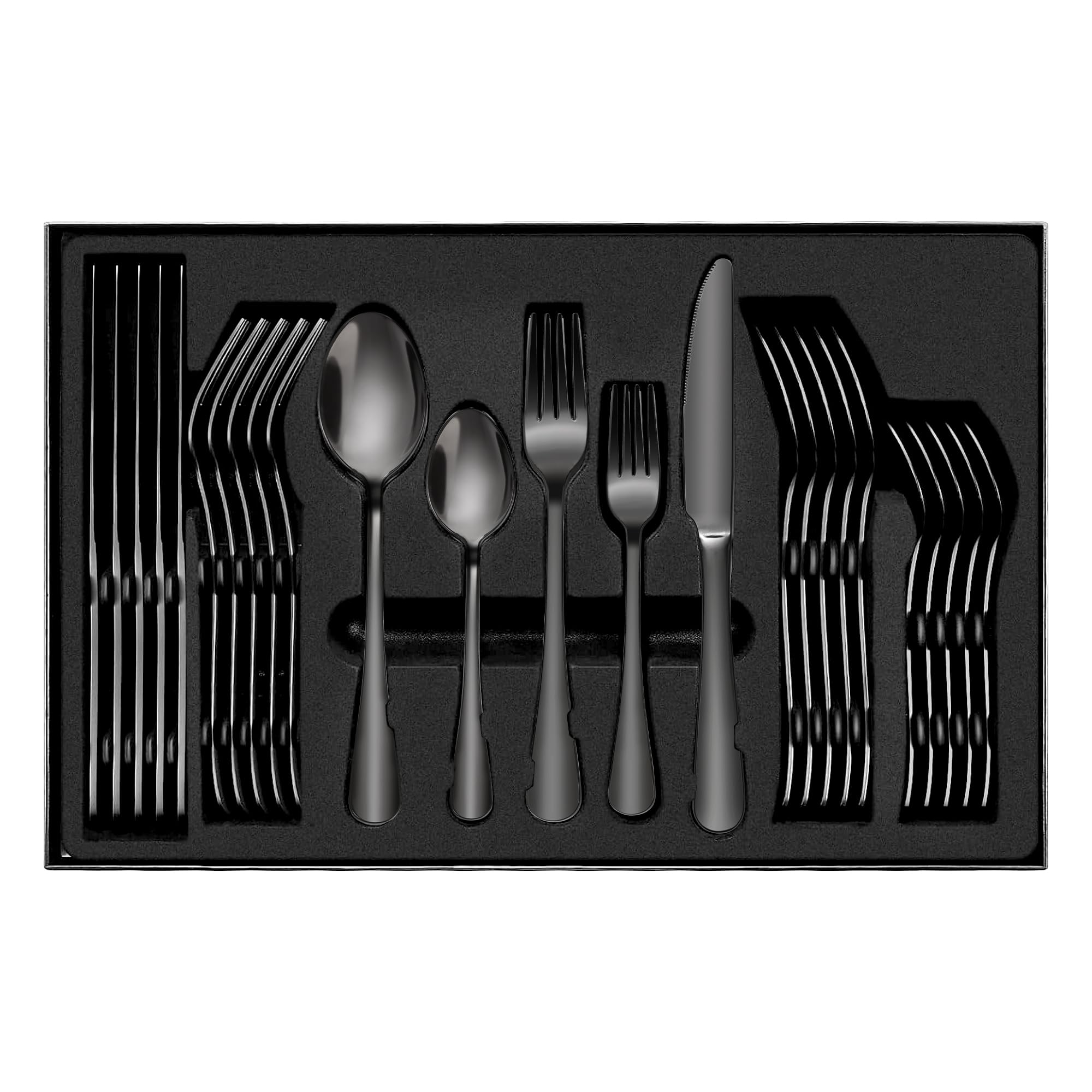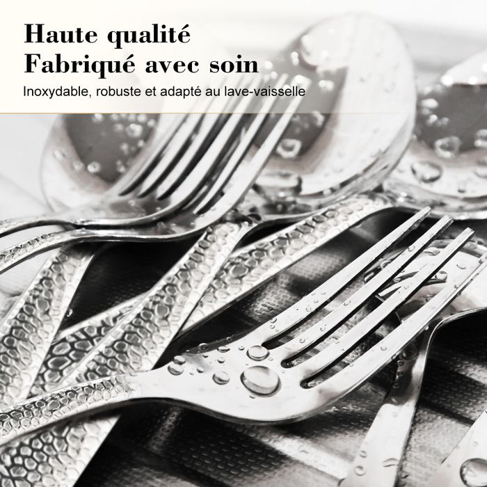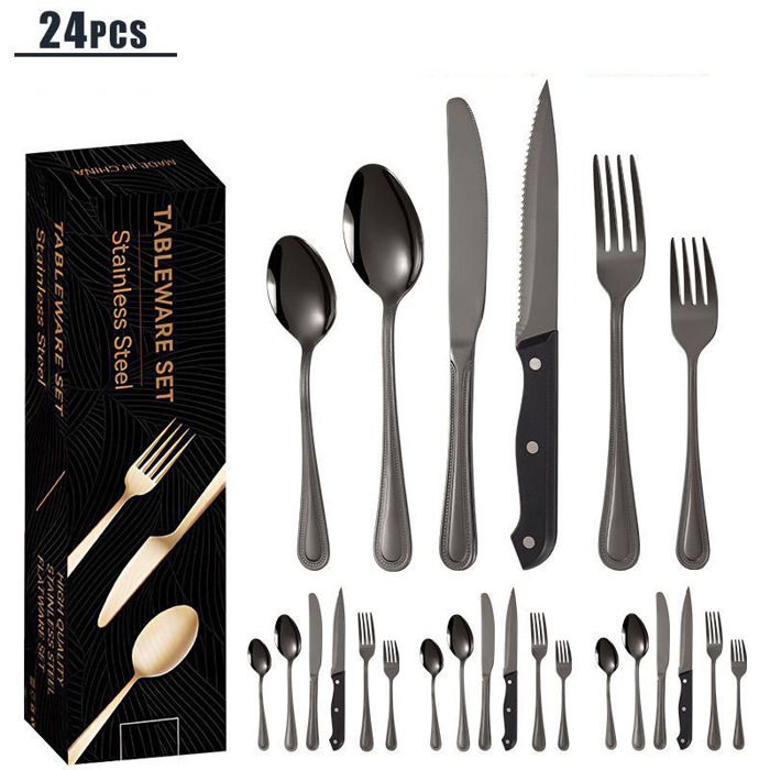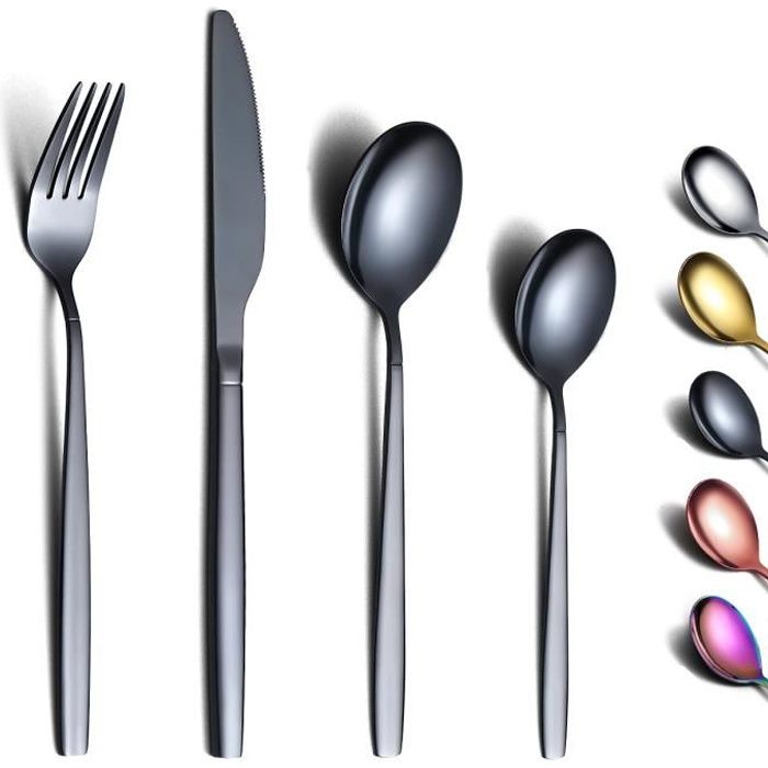 CONCEPTION : La surface lisse et la finition soignée créent une atmosphère de repas élégante et luxueuse qui impressionnera votre famille et vos amis. Caractéristiques du produit : Design de mode, Bord lisse, Poignée ergonomique, Taille parfaite Ensemble de couverts Orion pour 6 personnes, 30 pièces, acier inoxydable, noir mat · 10 Couleur. 59,95€. M'AVERTIR. Rupture de stock Fabriquées en acier inoxydable 18/0, elles sont résistantes à la rouille et durables, tout en étant lavables au lave-vaisselle pour un entretien facile. Que ce soit pour des dîners, des pique-niques ou des fêtes, ces fourchettes à dessert et fourchettes à salade s'adaptent à toutes les occasions Vous n'avez pas à vous inquiéter de décoloration ou de fissures grâce à l'utilisation de la technologie de revêtement sous vide. 24 Pièces Titane Plaqué Noir Ensemble De Couverts, 24 Pièces Noir TAILLE : Cet ensemble de couverts a le poids idéal et la balance parfaite pour assurer un maximum de confort lors de l'utilisation et éviter la fatigue. Parfait pour les dîners, les fêtes, les mariages, les banquets et d'autres événements formels. Fourchettes De Table Seeshine Ménagère Noire Pour 6 Personnes, 30 Pièces En Acier Inoxydable Noir Brillant, Comprend Fourchette, Couteau Et Cuillère, Passe Au Lave- Vaisselle Ensemble Vaisselle De Table Ils sont parfaitement adaptés pour l'usage quotidien ou pour la préparation de dîners et de fêtes. Description du produit Ensemble de couverts en acier inoxydable Seeshine de 30 pièces, ensemble de couverts en métal noir brillant, set de couverts pour 6 personnes Fabriqué en acier inoxydable 18/0 de haute qualité, sécurité et durabilité. C'est également un choix merveilleux comme cadeau.