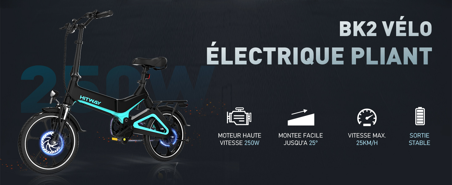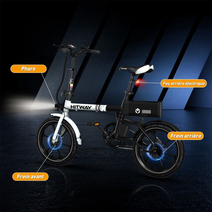 Par exemple : à 75 kg et 25 °C, l'autonomie électrique maximale peut atteindre 35 km. Vélo Électrique 16 Pliable HITWAY, 250W 36V 7,8Ah VAE d'assistance - Noir : infos et prix. Achetez sur et faites vous livrer chez vous ou bénéficiez du retrait en magasin L'autonomie réelle dépend de la charge et du style de conduite. Assistance au pédalage et écran intelligent : Le BK2 propose 5 modes d'assistance au pédalage (PAS), vous permettant d'ajuster facilement le niveau d'assistance du moteur grâce aux boutons de l'écran. Des phares LED, un avertisseur sonore et des réflecteurs assurent une visibilité optimale par faible luminosité ou de nuit, pour une sécurité accrue. Moteur 250W Vitesse 25km/h HITWAY 16 Vélo élctriqu 250W/36V élctriqu Pliabl D'assistanc à La Pédal Avc Battri 7,8Ah, Sans Accélératur, Pour Adolscnt T Adults Au Millur Prix Vélo Pliant 16 Pouces Adulte Conception compacte et pliable, idéale pour les trajets quotidiens : le HITWAY BK2 est un vélo électrique pliable et léger, conçu pour faciliter vos déplacements. L'écran LCD intelligent affiche clairement la vitesse, le niveau de batterie et le mode de conduite, vous permettant de suivre vos données de conduite en temps réel. Sécurité en ville : Côté sécurité, le vélo électrique HITWAY BK2 est équipé de freins à disque avant et arrière et d'un système de freinage électronique capable de couper instantanément l'alimentation du moteur. Sa batterie lithium amovible de 36 V et 7,8 Ah offre une autonomie de 35 à 70 km par charge (l'autonomie réelle varie en fonction du mode de conduite, de l'état de la route, de la température, de la charge, etc. Hitway Vélo électrique E-bike Ville Léger Pliable 16 Pouces 250w Avec Batterie 75ahpour Adolescent Et Adultes gris Hitway Confort et fluidité de conduite : Les pneus pneumatiques de 16 pouces, associés à une suspension avant, offrent une conduite souple et stable. Moteur puissant, super longue portée: Moteur 250W 36V - vitesse maximale jusqu'à 25 km/h et pente maximale de 25 degrés. Batterie au lithium amovible de 7,8 Ah/36 V, selon différents modes de conduite, la durée de vie maximale de la batterie peut atteindre 35 à 70 km