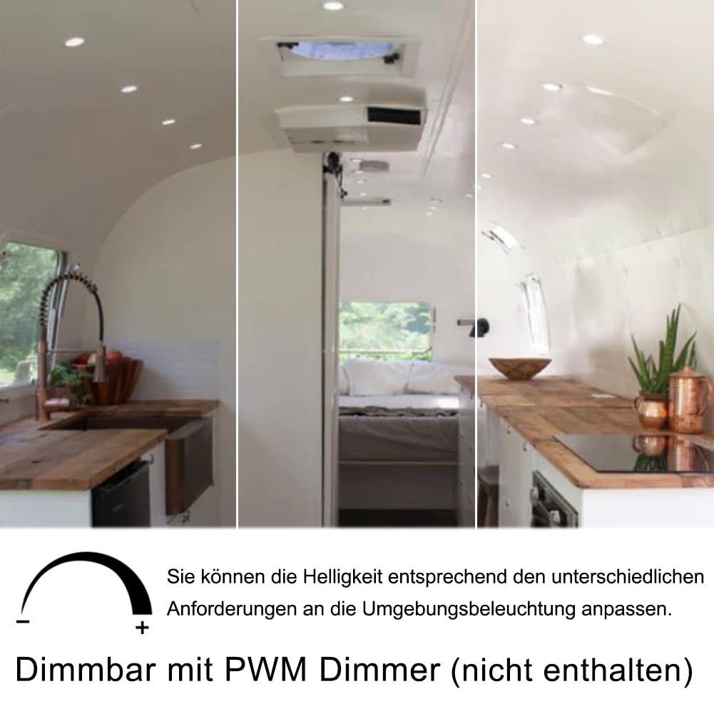 IP44 Étanche: Protection efficace contre les éclaboussures et les jets d'eau. Spot LED encastrable 4W | Extra plat, profondeur d'encastrement 27mm Combuh Spot Led 12V Camping Car Salle de Bain, Trou 55mm 58mm 60mm, 4W Spots Encastrable Extra Plat, IP44 Etanche Lampe Encastrer, pour Caravane Bateau Cuisin Meuble, 3000K 4000K 6000K, 6 Pièces Installation Facile: Câble de connexion extensible de 1,5 m et boîtier de raccordement à 6 trous répondent à vos besoins de bricolage - même les novices l'installent sans effort. Réduction des coûts énergétiques à bord. B.K.Licht lot de 3 spots encastrables spéciales salle de bain IP44, protégés contre les projections d'eau, extra plat, 115mm, modules LED 6W... Températures Couleur: Glissez simplement l'interrupteur latéral, choisissez blanc chaud 3000K, blanc neutre 4000K, blanc froid 6000K. Aucun risque d'électrocution pour un confort de voyage en toute sécurité. Installation Facile Câble 1.5m Spots Camping-car 12V 3000K Spot LED Encastrable 12V Obeaming - 4 Spots Extra-plats 3000K - Dimmable - IP64 - Pour Camping-car, Van, Bateau Plafonnier Spot Spots LED Encastrables
