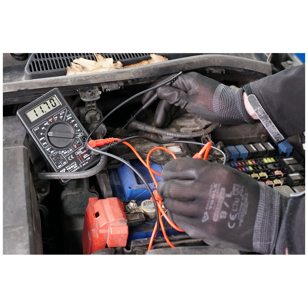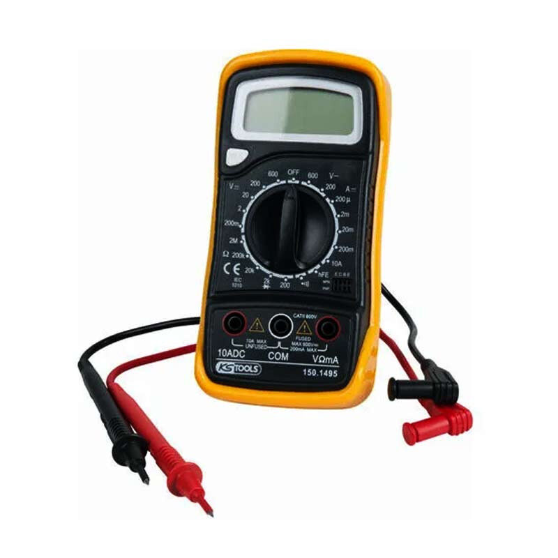 Fonctionnalité et qualité Made in Germany - le meilleur pour les bricoleurs, les artisans et les mécaniciens Multimètre digital- KS Tools | 150.2040 devis sous 24h • Approuvé selon les normes internationales : EN 61326-1 : 2013 et EN 61326-2-2 : 2013 • Directive relative à la compatibilité électromagnétique des produits électriques et électroniques (2014/30/UE) • Protection contre la surcharge lors de la mesure de la tension AC/DC, du courant DC, des résistances, des capacités, des diodes, des tests logiques et du test de continuité • Avec affichage LCD bien lisible • Jeu de câbles de mesure avec pointes de contrôle inclus Le multimètre numérique BRILLIANT TOOLS BT122910 est un multimètre compact pour toutes les mesures habituelles dans le modélisme, lors des loisirs, en atelier et à domicile. Précision et perfection de la production : une gamme brillante., Une qualité brillante., Un prix brillant. Une gamme de produits de haute qualité à un rapport qualité-prix avantageux Des outils professionnels pour tous les usages, éprouvés avec plus de 25 ans d’expérience La sélection de la plage de mesure est par ailleurs automatique pour le test des diodes, le test de continuité et le test des transistors. Cheville a Frappe | Algerie | meilleur prix Économisez de l’argent sans renoncer à vos exigences de qualité ! Ce multimètre permet de mesurer tension, résistance, température et intensité, mais aussi de réaliser des tests de continuité et des tests des diodes. Nous n’avons pas de grande structure de distribution, ni d’activités marketing extravagantes, et pouvons donc proposer nos produits à un rapport qualité/prix extrêmement intéressant. Le multimètre numérique BRILLIANT TOOLS BT122910 est un multimètre compact pour toutes les mesures habituelles dans le modélisme, lors des loisirs, en atelier et à domicile. Ce multimètre permet de mesurer tension, résistance, température et intensité, mais aussi de réaliser des tests de continuité et des tests des diodes Multimetre Facom BRILLIANT TOOLS BT626050 Getriebespülgerät Für Automatikgetriebe Inklusive 35-tlg Adapter-Satz [Powered By KS TOOLS Testeur Electrique Données techniques : Tension continue : 200 mV - 600 VTension alternative : 200 V - 600 VCourant continu : 10 ARésistance : 200 Ohm – 2 MegaOhm NOTRE QUALITÉ : BRILLIANTNOS PRIX : SMART Chaque outil recèle plus d’un quart de siècle d’expérience de nos experts.