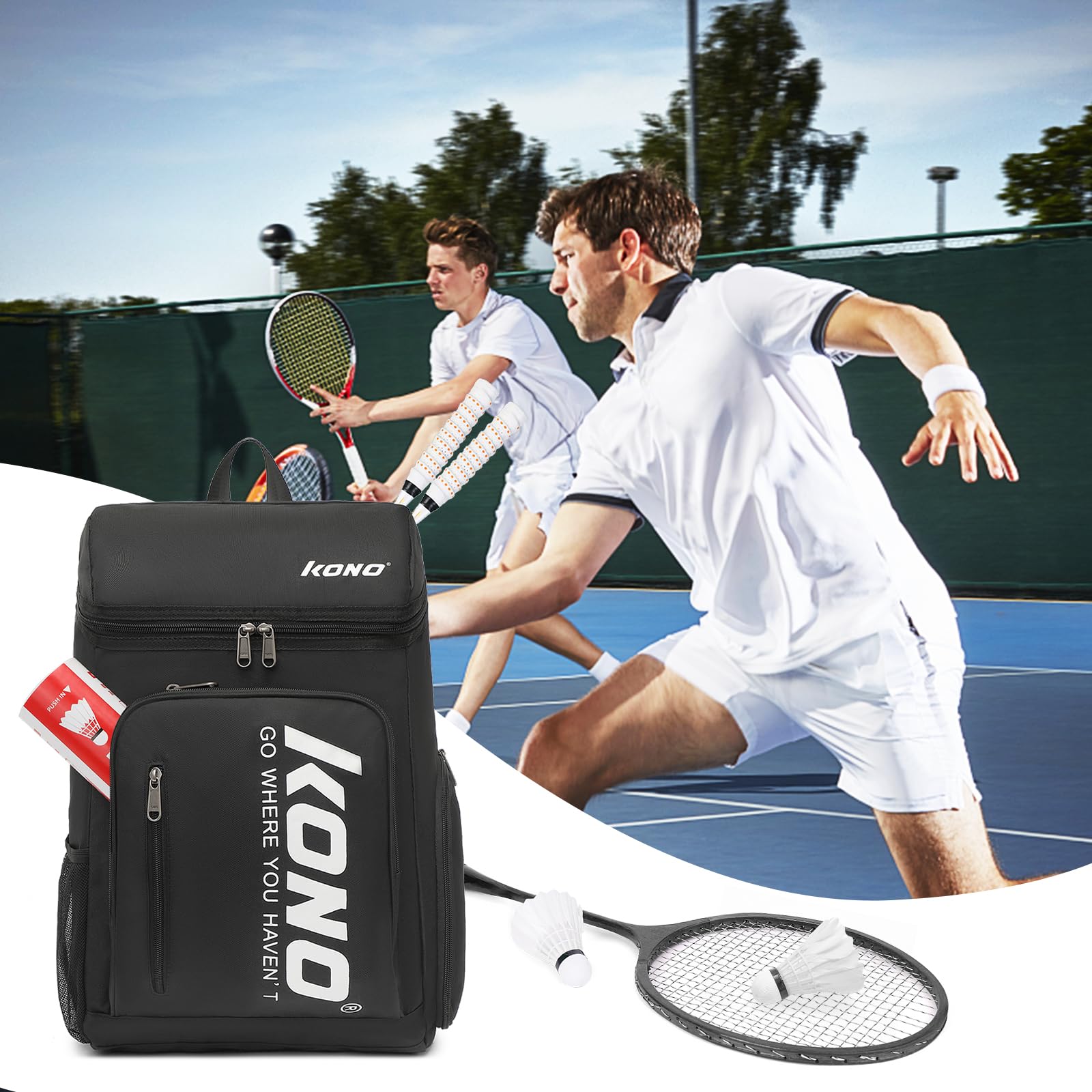 【Matériau résistant à l'eau】: Ce de sport est fabriqué à partir de tissu en nylon imperméable, qui peut résister à des conditions météorologiques inattendues, garantissant une durabilité et une utilisation à long terme 【Utilisation polyvalente】: Idéal pour divers sports de plein air tels que le tennis, le badminton et le pickleball, ce qui en fait un choix polyvalent pour les athlètes 【Léger】: Ce fourre-tout de tennis présente une conception légère, ce qui le rend facile à transporter et idéal pour les activités sportives quotidiennes Sac équipement Sportif Outdoor Sac à Dos De Tennis Avec Compartiment à Chaussures, Conçu Sac Raquette De Tennis Design spacieux : ce sac à dos polyvalent est conçu pour contenir jusqu'à 3 raquettes, ce qui le rend idéal pour les amateurs de tennis, de badminton, de squash et de pickleball Design spacieux : ce sac à dos polyvalent est conçu pour contenir jusqu'à 3 raquettes, ce qui le rend idéal pour les amateurs de tennis, de badminton, de squash et de pickleball. Sa grande capacité vous permet de transporter facilement tous vos équipements essentiels Voir plus de détails Sac à Dos de Tennis Grande Capacité – Body Technology