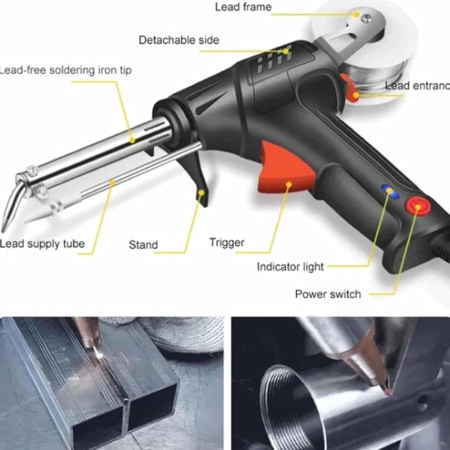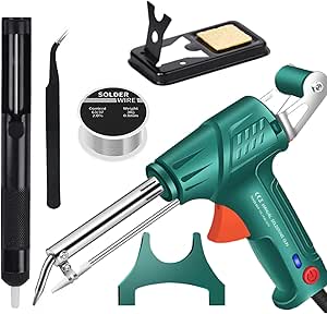Multi-function Soldering Iron Soldering Gun Set, 60W External Heating Soldering Gun, Auto Send Tin Soldering Kit for Repairs Home DIY, Electric Soldering Gun Kit, 1., Multi-Function Soldering Iron Soldering Gun Set: The multi-function soldering iron soldering gun set does not generate static electricity during use, preventing damage to sensitive circuit boards. Package includes: 1 Set * Multi-function Soldering Iron Soldering Gun Set Notes: 1., Due to different display and lighting effects, the actual color of the item may be slightly different from the color shown on the picture., 2., If you have any questions, please feel free to send us an email, we will give you a satisfactory reply within 24 hours. Additionally, the internal ceramic heating technology allows the 60W soldering iron to heat up rapidly., 2., Detachable Stand and Side Door: The multi-function soldering iron and soldering gun set features a detachable stand that keeps upright when not in use, preventing accidental burns or surface damage. This multi-function soldering iron soldering gun set is suitable for home use, studios, production lines, and more. This multi-function soldering iron soldering gun set can be mounted anywhere, making it suitable for home use, studios, production lines, and more., 4., One-Handed Operation Design: The soldering desoldering pump features a simple structure, allowing both right-handed and left-handed users to operate it easily. Wide Application]Multi-Function Soldering Iron Soldering Gun Set is widely used as a soldering iron tool for soldering circuit boards, home appliance repairs, and home DIY enthusiasts Fer à Souder Externe Chauffage Sodering Iron 60W Multi-Function Soldering Iron Gun Set - External Heating Soldering Tool With Stand For DIY & Repairs Laser Welding Fer à Souder Avec Support Détachable New Professional 60W Tin Soldering Gun Set CE/FC Certified Electric Solder Iron With Light Welder Machine For Electronic Welding