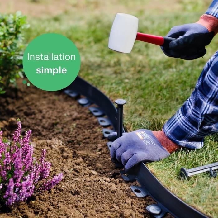 Il résiste aisément passage du fil du coupe-bordure. De couleur gris anthracite, ce rouleau bordure de jardin mesure 20 mètre. Grâce à son aspect et sa couleur, cette bordurette souple s'intègre parfaitement dans le jardin. Fabriqué à 100% avec déchet plastique ménager , Facile à poser Recyclable : une fois en fin de vie, cette bordure peut être recyclée à son tour. Pack Bordure Piquets Noir Pack Bordure De Jardin Flexible JARDINEX 20 M + 20 Piquets Noir Jardinex 66702fe3b85ede16c2ea40fe Toile De Paillage Sans entretien : totalement imputrescible, la bordure ne nécessite aucune intervention une fois installée. Bon rapport qualité/prix Avantages de la bordure jardin plastique JARDINEX Cette bordure de jardin flexible présente de nombreux avantages : Pack tout en un : ce pack est prêt à l'emploi. Peu d'outils sont nécessaires. Cette bordure de jardin flexible est fabriquée à partir de plastique recyclé issu des déchets ménagers quotidiens. De couleur gris anthracite, ce rouleau bordure de jardin mesure 20 mètres Détail de la bordure de jardin grise Cette bordure de jardin flexible est fabriqué à partir de plastique recyclé issu des déchets ménagers quotidiens. Robuste : ce plastique recyclé est très résistant, notamment lors de l'entretien du jardin. Facile à travailler : ce plastique est facile à façonner, tant en terme de perçage que de découpe. Il est constitué de la bordure de jardin en rouleau plastique, de 20 piquets et la visserie inox. Détail de la bordure de jardin grise. Cette bordure de jardin flexible est fabriquée à partir de plastique recyclé issu des déchets ménagers quotidiens Bordure De Jardin Flexible JARDINEX 20 M - Noir | Leroy Merlin Bordure De Jardin Rigide Facile à installer : grâce au système de fixation par piquet, aucune maçonnerie préalable n'est nécessaire.