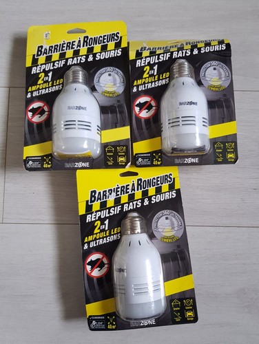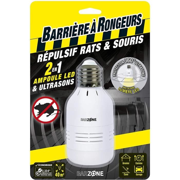 Pratique : protection 360°, Avec ou sans lumière LED Répulsif rats et souris sous forme d'ampoule LED pour une protection de la maison contre l'invasion des rats et des souris- Action choc : l'ampoule émet des ultrasons inaudibles par l'Homme, les chiens, chats et animaux de ferme- Pratique : protection 360°, Avec ou sans lumière LED- Utilisation rapide et simple décrite au dos de l'emballage- Contenu : 1 x Ampoule LED Répulsif Rats et Souris, BARRIERE A RONGEURS, BARPULSE Utilisation rapide et simple décrite au dos de l'emballage Répulsif electromagnétique - Top 10 de 2025 - Comparatif des Meilleurs Contenu : 1 x Ampoule LED Répulsif Rats et Souris, BARRIERE A RONGEURS, BARPULSE Ampoule LED répulsif rats et souris à ultrasons 2 en 1. Permet d'éclairer votre pièce tout en repoussant les souris et les rats grâce aux ultrasons émis par l'ampoule qui perturbent l'ouïe des rongeurs et les éloignent Ampoule LED Anti Rats Souris 40 M² Protection Maison BARRIÈRE À RONGEURS Répulsif Ultrasons Rats Souris /nc Répulsif Rongeurs Rongeurs, comment les identifier ? | Barrière à nuisibles