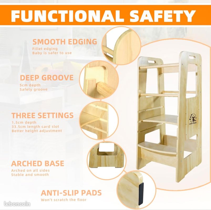 La Kiddy dreams Tour d’observation Montessori est une tour en bois naturel, réglable en hauteur (trois positions possibles) et dotée d’une barre de sécurité amovible Traits:version pliableRéglage de la hauteur à trois niveauxAvec garde-corps de sécurité et protection des coins arrondispeint avec du vernisSpécification:Taille du produit : 43 cm * 48-62 cm * 90 cmTaille du produit plié : 43 cm * 16 cm * 99 cmTraitement de surface : laquehauteur de plate-forme :Le premier étage est à 32 cm du sol, le deuxième étage est à 40 cm du sol et le troisième étage est à 47 cm du solCharge maximale : 100 kgAttention : ne laissez pas votre enfant sans surveillance! Montessori 1 An CCLIFE Tour D'Observation Montessori En Bois Naturel, Réglable En Hauteur, Tour D'apprentissage Sécurisée, Charge Jusqu'à 100 Kg, Assistant De Cuisine Idéal Pour Bébé Et Enfants Tour D'apprentissage La description:Ce tabouret de travail pliable Montessori répond aux besoins des familles qui disposent d'un espace limité ou qui ne veulent pas le laisser dehors tout le temps. Protection complète : avec garde-corps de sécurité et coins arrondis pour protéger les enfants contre les chutes accidentelles et les collisions., Peut supporter 100 kg. Augmentez l'indépendance de votre enfant : favorisez l'indépendance et la confiance en soi en permettant à votre enfant de se tenir seul pour se brosser les dents dans la salle de bain et manger dans la cuisine. Design pliable : la tour pour enfants est facile à ranger, économise environ 70 % d'espace et garde la chambre propre et bien rangée. Trois niveaux de réglage de la hauteur Tour D'observation Aazon | onde ontessori S'ils doivent se brosser les dents ou manger dans la cuisine, laissez les enfants le faire eux-mêmes. Design pliable : la tour pour enfants est facile à ranger, économise environ 70 % d'espace et garde la chambre propre et bien rangée. N'ayez pas peur des chutes, des chocs et d'autres problèmes lors de l'utilisation du produit car nous avons des barrières de sécurité et des coins arrondis à protéger !