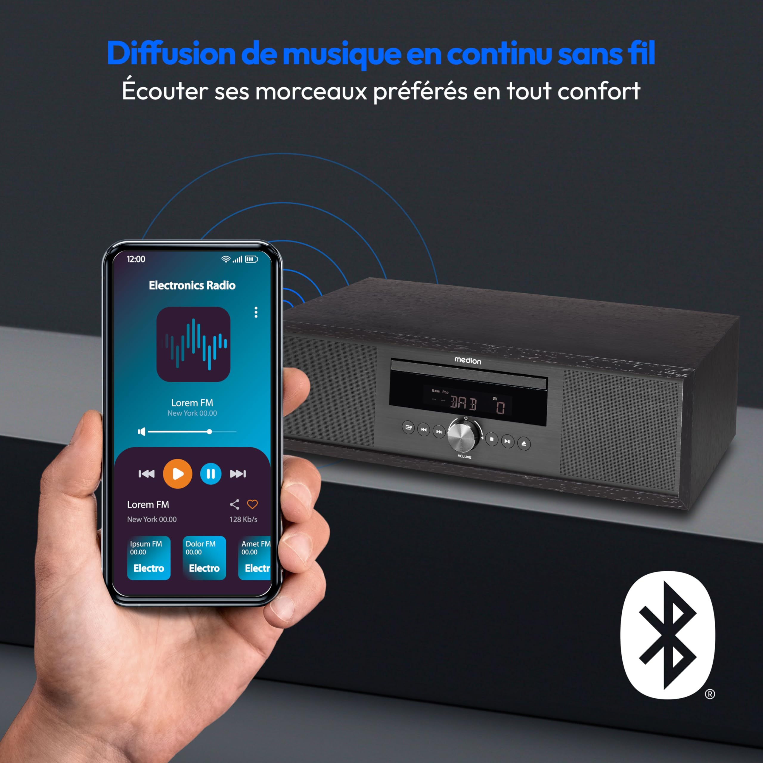 Mini Chaine Hifi Minicadena Sony MEDION P64145 Système Audio Tout-en-un (DAB , CD, MP3, Radio FM PLL, USB, Système Compact, Design élégant, Fonction Réveil, Mise En Veille Automatique Minicadenas De Musica Poste Grâce à la transmission numérique, vos stations préférées sont diffusées en qualité supérieure. Avec 5 préréglages de sons, vous avez le choix entre pop, rock, jazz et bien d'autres encore. Grâce à la télécommande, toutes les fonctions importantes sont directement à votre disposition par d'une simple pression sur un bouton. Quelles sont les clés USB prises en charge ? Les clés USB sont prises en charge avec une capacité de stockage allant jusqu'à 32 Go, Fonction de réveil - réveil par radio, son d'alarme, CD ou USB, fonction de répétition (snooze) Transmission de musique sans fil depuis un smartphone ou une tablette (portée jusqu'à 10 m, selon les conditions ambiantes) Vous pouvez écouter votre musique préférée via la sortie casque Il y a de la musique dedans Le meilleur son du matin au soir Faites entrer la musique dans votre maison avec ce système audio. Système audio tout-en-un LIFE ® P66024 .BE Le boîtier élégant de cette merveille sonore compacte renferme une énorme variété de lecture. Medion P64145 - Radio DAB - FM - Bluetooth - USB - CD/MP3 - Argent ; Type de tuner, Analogique et numérique ; Syntoniseur RDS inclus, Oui ; Syntonisation... et mémorisées (30 mémoires de stations). Grâce à la réception PLL FM/DAB, vous pouvez écouter vos stations de radio préférées ou accéder à des stations du monde entier via Internet. pour chaque genre le bon format sonore. 1 Bluetooth 2 Système sonore 2., 1 3 Lecteur CD Un son cristallin Système sonore 2., 1 Avec une puissance de sortie de 2 x 15 W RMS, le P64145 fournit une qualité sonore convaincante. Stockez votre vaste collection de collection de musique sur une clé USB et lisez les fichiers directement sur le P64145 MEDION P64145 Système Audio Tout-en-Un (Dab , CD, MP3, Radio FM PLL, USB, système Compact, Design élégant, Fonction réveil, Mise en Veille Automatique) Anthracite En outre, le DAB+ offre la possibilité d'afficher des informations sur l'écran intégré. 5 préréglages du son