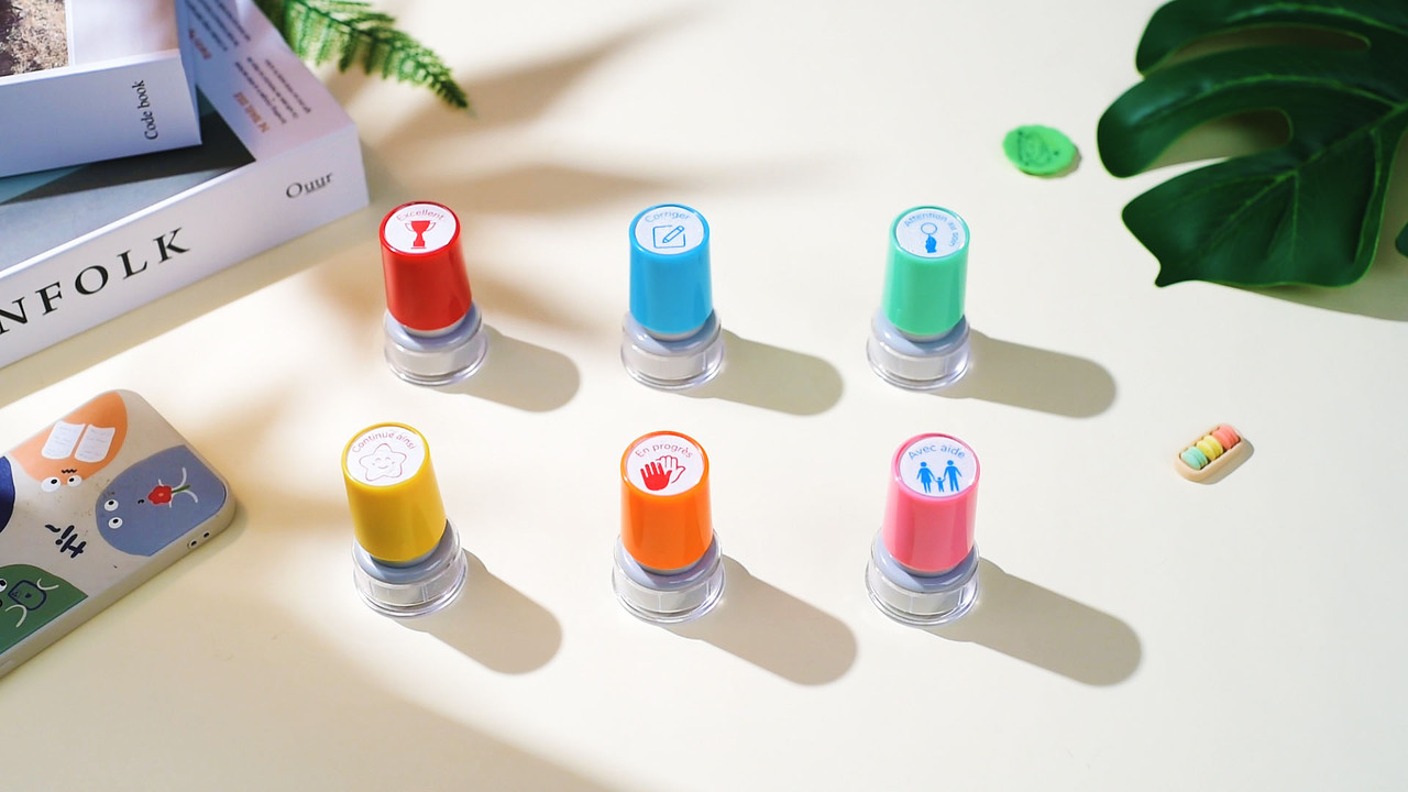 Description du produit Nom du Produit : Plastique Tampon Auto Encreur Diamètre du Tampon : 20 mm Matériau : résine écologique Contenu du Paquet : 12 tampons enseignants avec différents motifs de dessins animés et messages motivants La partie supérieure comprend un couvercle transparent pour faciliter l'identification des types de messages Un cadeau attentionné idéal pour les professeurs d'allemand, les parents ou les élèves, adapté aux vacances, aux anniversaires ou aux récompenses quotidiennes. Tampons Auto-Encreurs | Lot de Tampons Pour Enseignants Évitez tout contact avec les yeux. 【Matériau Écologique de Qualité Supérieure, Sûr et Durable】Le corps du tampon prof est fabriqué à partir de résine PC haute résistance et respectueuse de l'environnement, offrant une résistance aux chocs et à l'usure. 【Élégants et Pratiques, un Excellent Cadeau】De fabrication raffinée et dotés de fonctionnalités pratiques, ces tampon auto encreur constituent des cadeaux attentionnés pour les professeurs d'allemand, les parents ou les élèves. Accessoire Pédagogique Cadeau Prof 12PCS Plastique Tampon Auto Encreur, Tampons Encreurs Enseignants Tampons Dessins Animés école Tenir à l'écart du feu ouvert et des sources de chaleur directes La surface du tampon présente des lignes nettes et une encre vive et résistante à la décoloration. Le couvercle transparent facilite l'identification et le rangement tout en empêchant l'encre de sécher. 【Conception Auto-Encreuse, Prêt à L'emploi】Dotés d'une technologie auto-encreuse, les tampon enseignant sont préremplis d'encre avant leur expédition, ce qui évite de devoir les recharger manuellement. Tampons Enseignants d'Allemand | Gesehen Tampon Auto-encreur Chaque tampon professeur permet d'obtenir plus de 1 000 impressions nettes, garantissant une durabilité à long terme pour une correction rapide des devoirs. Tampons Enseignants de Le Cartable de Sanléane | Coffret de 6 Tampons...