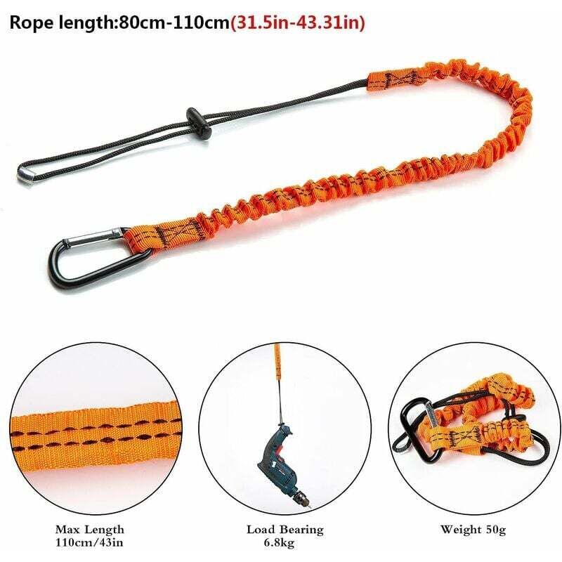 L’extrémité en boucle de la longe se connecte directement à un point de connexion d’un outil, soit via une poignée captive, soit via un œillet usiné. Facile à installer, elle optimise la productivité sur le chantier en permettant un gain de temps précieux, en réduisant la fatigue des opérateurs, en augmentant la liberté de mouvement et en améliorant la mobilité. AOUGO Lanière à Outils, 3 Pièce Cordon Porte-Outils de Sécurité Rétractables avec Mousqueton Simple et Extrémité de Boucle Réglable, Outil de Protection Avec une capacité de travail maximale de 6,8 kg, ils offrent une protection fiable contre les chutes. Large application : nos cordes de protection contre les chutes sont adaptées à différents outils et applications, y compris les marteaux, tournevis, outils de mesure, perceuses, scies, clés, pinces, et plus encore CONCEPTION POLYVALENTE : Ces longes élastiques sont très polyvalentes et s’adaptent à une large gamme de tailles et de types d’outils, qu’il s’agisse de tournevis, d’outils de mesure, de pinces, de clés, de marteaux, de perceuses, de scies ou d’autres petits outils. Longe de poignet à boucle porte-outils anti-chute ERGODYNE 3116 POLYVALENTE : Cette corde antichute est adaptée à divers outils et applications, que vous travailliez sur un chantier, fassiez des travaux ménagers ou pratiquiez le camping et l'escalade. NOTRE SERVICE : Service et qualité irréprochables. Attache Cle Lanière Pour Outils, 3 Pièces De Sécurité Avec Mousqueton Pour Outils De Travail~p117422454 Longe Outil Extensible 80-110cm RÉTRACTABLE : Longueur extensible de 80 à 110 cm, capacité de charge maximale : 6,8 kg. Spécifications : Matériau : Sangle en nylon, boucle en aluminium Longueur totale : 80 cm Longueur dépliée : environ 100 cm 110 cm Capacité de charge : 6,8 kg Couleur : Orange Poids : 50 g Contenu de l’emballage : 3 cordes de sécurité tactiques Caractéristiques : Élastique, durable Polyvalent, réglable Matériau de haute qualité Installation facile et conviviale Compatible avec tous types et tailles d’outils Multifonction : Idéal pour la pêche, la chasse, le camping, la randonnée et autres activités de plein air. DURABLE ET LÉGER : Cette longe élastique avec mousqueton est fabriquée en nylon haute visibilité et résistant, avec des crochets en caoutchouc élastique et en acier.