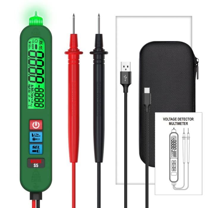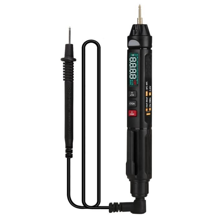 Multimètre écran Couleur FLUKE Mini Stylo De Test électrique Portable Testeur De Tension Sans Contact Outil De Détection De Multimètre Numérique 【Fonctionnement Intelligent et Confort élevé】 : avec fonction de détection automatique AC et DC, avec un bouton de détection rapide de la tension de fuite, pour obtenir une détection rapide et précise des fuites. EFUTURE RM203 Multimètre Stylo Numérique Auto Gamme Vrai RMS NCV 6000... Multimètre portatif 2 en 1, stylo de Test électrique numérique, testeur de 6000 points, affichage LCD, mesure de la température pour Test électronique Dimensions de l'article : 210 x 28 x 20 mm / 8,27 x 1,10 x 0,79 pouces Poids de l'article : 77 g Dimensions de l'emballage : 228 x 83 x 42 mm / 8,98 x 8,27 x 1,65 pouces Poids du colis : 248 g Contenu : 1 multimètre., 1 stylo de test 【Durée de vie de la batterie économe en énergie et durable】: Alimenté par une batterie au lithium rechargeable, il permet d'économiser considérablement les coûts d'utilisation et offre une longue durée de veille et d'utilisation pour répondre aux exigences d'une utilisation continue à long terme. 2 Pièces Multimètre Digital Multimetre Multimètres Détecteur De L'affichage analogique à barres tricolore spécialement conçu pour la mesure peut reproduire les résultats de mesure de manière intuitive. Spécifications: Nom : multimètre Matériau : ABS Batterie : 1 batterie au lithium intégrée de 3,7 V, 400 mAh (incluse) Affichage: écran LCD Affichage maximum : 6000 comptes. Tension de fuite : 12-300 V. Taux d'échantillonnage : environ 3 fois/s. Fréquence : 1000 Hz-9999 Diode : détection automatique Cycle de fonctionnement : 10,0 % - 95,0 %. 【Affichage visuel LCD couleur】 : la configuration de l'écran couleur clairement définie garantit un affichage clair, que ce soit de jour comme de nuit, améliorant ainsi l'expérience utilisateur. Intégration innovante et expérience ultime : l'intégration d'un stylo de test de fuite et d'un multimètre entièrement fonctionnel dans un seul appareil, la combinaison de la technologie lithium-ion rechargeable et d'un écran couleur permet une intégration multifonctionnelle, répond aux exigences complètes de mesure électrique et offre une expérience de mesure de résultat sans précédent. Tension continue : 0,60 V-620 V.