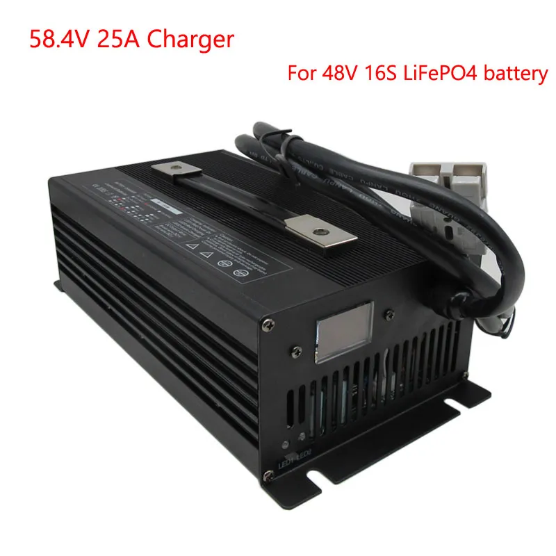 Il utilise une puce de charge à basse température pour réduire la chaleur générée par la batterie et le chargeur pendant le processus de charge. Chargeur de batterie au lithium 48V / 58.4V 15A LiFePO4 avec charge intelligente Fonctions de protection multiples pour batteries de voiturette de golf 48V LiFePO4 Comparé aux chargeurs ordinaires, il peut prolonger la durée de vie de la batterie. ✅ Boîtier robuste et refroidissement rapide : Ce chargeur de batterie lithium 48V est fabriqué en alliage d'aluminium avec un traitement d'oxydation de surface (garantissant une haute dureté). ), les chariots élévateurs, les laveurs de sol, les motos électriques, les bateaux, les systèmes solaires, les camping-cars (RV), les applications hors réseau (Off Grid), les moteurs hors-bord électriques, les moteurs de pêche (trolling motors), etc. Chargeur 58.4v 15a Lithium Chargeur De Batterie Au Lithium-ion 15A Pour 48V 16S Lifepo4 Packs 58 4v Ip67 Water Proof Chargeur De Batterie Intelligent 12v ✅ Fonction de protection intelligente : Le chargeur de batterie LiFePO4 48V 15A dispose de multiples protections de charge, notamment une protection contre la basse tension, une protection contre la surtension, une protection contre le surcourant, une protection contre la surchauffe, une protection contre le court-circuit de sortie, une protection contre la polarité inversée, etc. N'hésitez pas à nous contacter pour toute question ; nous ferons tout notre possible pour répondre à vos besoins. ✅ Large compatibilité : Compatible avec les véhicules de golf 48V (EZGO, Club Car, etc. ✅ Mode de réveil de charge à 0V : Réinitialise et répare la batterie après la protection de coupure du BMS (système de gestion de batterie). Fabrika Toptan 900w Ce Rohs 16s 58.4v 15a Şarj Cihazı 48v Lifepo4 Pil Şarj Cihaz Si il fonctionne en continu pendant plus de 14 heures, il s'arrêtera automatiquement jusqu'à ce qu'il revienne à un état normal, puis redémarrera la charge — ce qui améliore considérablement les performances de sécurité du chargeur. Chargeur au Lithium Lifepo4 cellules Courant Chargeur 58,4 V 15 A for Batterie polymère LiFePo4 48 V et Chargeur de Batterie Haute Puissance 51,2 V 16 S 15...