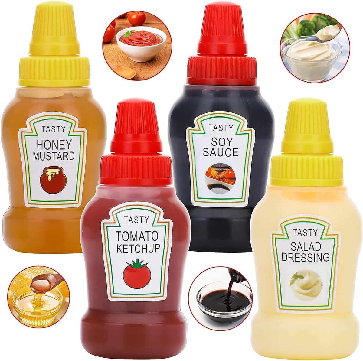 Conception compacte et portable: les petites bouteilles de compression de condiments sont la taille parfaite pour une utilisation en déplacement., ., Chaque bouteille de 25 ml est suffisamment compacte pour tenir dans les boîtes à lunch, les paniers de pique-nique ou les sacs de tournée, en vous assurant que vous avez vos condiments préférés partout où vous allez. Mini les bouteilles de compression de condiments, 8pcs 25 ml Mini bouteille de ketchup vide, contenant des contenants de condiments portables en plastique transparent avec couvercle de scell. Couvercle d'étanchéité: la bouteille de mini-ketchup est équipée d'un couvercle d'étanchéité sécurisé qui empêche les fuites et les déversements., ., Que vous emballiez la sauce de soja pour les sushis ou le miel pour le thé, ces bouteilles gardent vos condiments en sécurité et sans gâchis. Obtenez en gro bouteille de ketchup pour le olution d'emballage Matière en plastique transparent: en plastique transparent, les mini-bouteilles de compression de condiments sont résistantes à l'usure et réutilisables., ., Ils sont faciles à nettoyer et à remplir, ce qui en fait une option écologique pour le stockage des condiments. Commandez 8 pcs 25 ml Mini bouteilles de compression de condiments, récipients sauce en plastique portables avec couvercle joint pour le ketchup, miel, vinaigrette Bouteille Salade Mini Bouteilles à Presser Transparentes Pour Condiments, 4/8 Pièces, Distributeurs De Pansement Pour Salade, Ketchup Au Miel, Pots Portables Compressibles Bouteilles Condiments Taille : chaque mini bouteille en plastique mesure 7,3 x 3,1 cm, le corps souple de la bouteille de condiments permet de presser facilement les sauces et de contrôler la quantité de miel, vous permet de répandre facilement et facilement de délicieuses sauces sur les aliments ou les frites