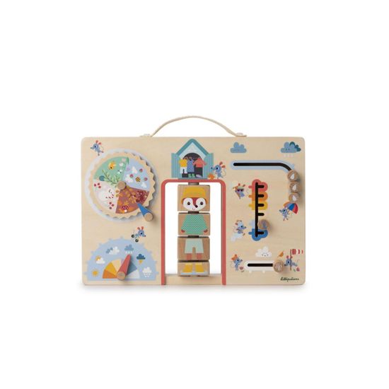 Panneau d'activités espace WOOD N PLAY : King Jouet, Activités d'éveil Tableau De Voiture Bébé VILAC - Ma Première Voiture Tableau D'activités Et D'éveil - Jouet Premier Age - 1 Tableau De Bord Multi-activités En Bois - Jeux D'Eveil Pour Enfant En Bois - Jouet Pour Enfant Tableau D'activités éveil Un jeu d’imitation captivant : L’enfant s’amuse à faire comme les grands, en tournant le volant, en appuyant sur les boutons et en manipulant les différents éléments interactifs. Embarquez votre enfant dans une aventure interactive avec Ma Première Voiture - Tableau d’Activités de VILAC ! Son design coloré et attractif attire l’attention des enfants et leur donne envie de jouer encore et encore. Jeu d’éveil en bois, Tableau de bord multi-activités Un tableau de bord interactif : Ce jouet d’éveil en bois reproduit un tableau de bord réaliste avec volant, klaxon, levier de vitesse et autres accessoires pour stimuler l’imagination des petits conducteurs. Prenez plaisir à regarder votre enfant jouer avec ce jeu d'éveil multi-activités : une taille adaptée, des activités ludiques et des couleurs toutes douces. Partons en voyage ! Points forts : • Développement de la motricité fine. • Découverte, observation, réflexion. • Jouet d'éveil Montessori. • Développement cognitif Développe la motricité et les sens : Grâce à ses multiples activités (boutons à tourner, leviers à pousser, éléments sonores), ce jouet favorise la coordination main-œil et la motricité fine dès 18 mois. Dès 18 mois, votre enfant pourra explorer un véritable poste de conduite miniature, équipé d’un volant à tourner, d’un levier de vitesse, d’un klaxon, de boutons et d’autres éléments interactifs.