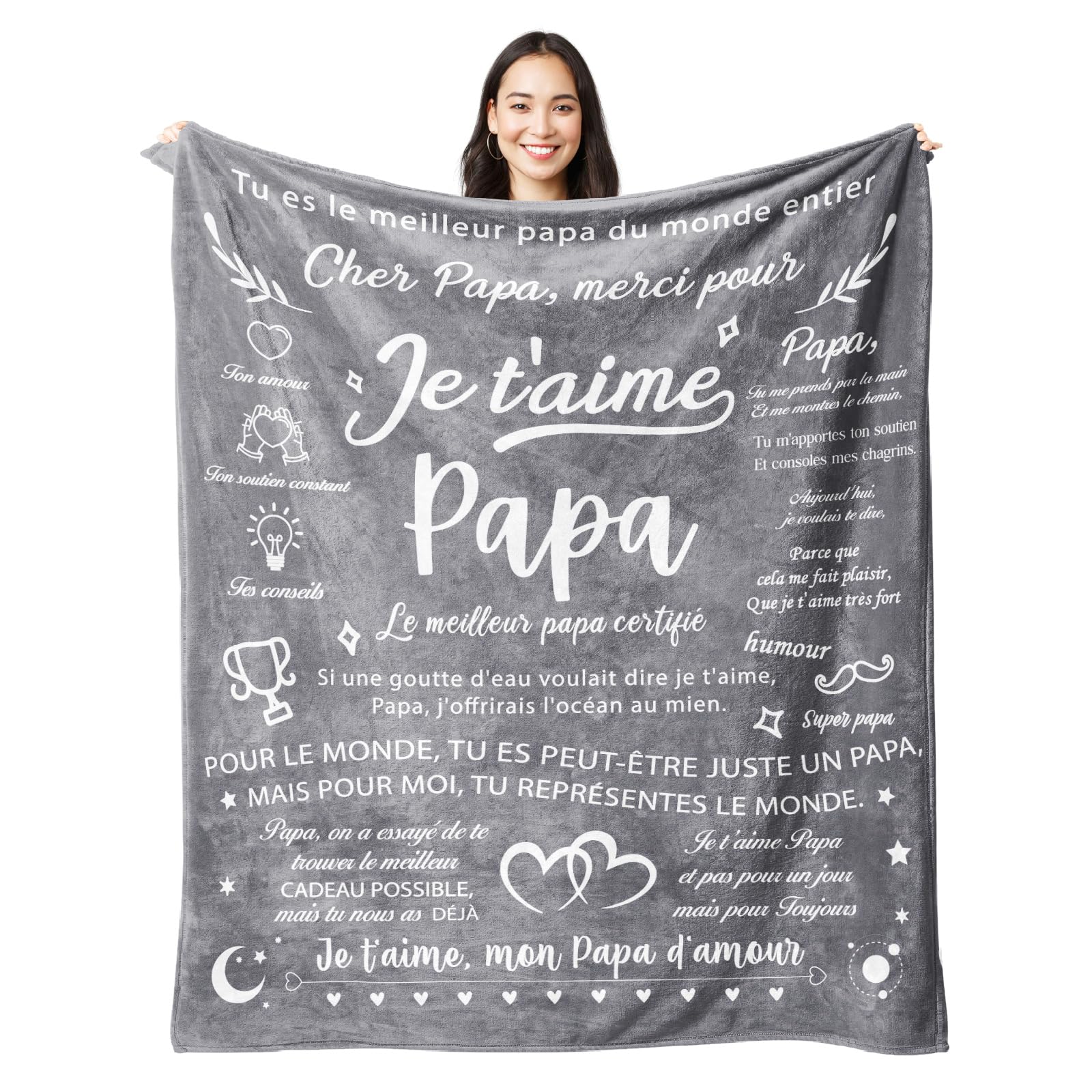Chaque fois que maman verra cette couverture en flanell gravée de mots qui réchauffent le cœur, elle ressentira un fort amour de la part de ses enfants 【Dis Je t’ aime à Maman】Offrez à maman un cadeau unique, faites savoir à maman combien vous l'aimez. Achetez Niyewsor Cadeau Anniversaire Maman, Plaid Couverture Polaire Cadeau pour Maman, Cadeau Maman Noel, Cadeau Fete des Meres, Idée Cadeau de Fête des Mères et de Noël pour Maman 62 * 52in (Gris Cadeau Fete des eres Original aan Couverture Cadeau Personnalisée... 【Cadeau pour Maman pour n’importe quelle occasion】Cette veilleuse de maman convient à différentes occasions, comme cadeaux anniversaire de maman, cadeaux de fête des mères pour maman, Thanksgiving, cadeaux de Noël et tous cadeaux de vacances Idee Cadeau Fete des eres Couverture Personnalisée Cadeau aan Plaid 【Lavage en Machine Facile】 Lavable en machine, laver la couverture séparément à l'eau froide, puis sécher à l'air libre sans chaleur ou sécher au sèche-linge à basse température. La microfibre sèche plus rapidement et est plus moelleuse que jamais. Cadeau Jeune Maman Plaid Anniversaire Maman Plaid Personnalisé Fête Des Mères - Couverture Polaire Douce 62x52 Pouces - Cadeau Émotion Cadeau Maman Plaide Personnalisée Grands cadeaux pour la meilleure mère, futur maman, belle-mère, maman adoptive. 【Cadeau Maman】Cadeau parfait pour les personnes les plus importantes de votre vie. Merci maman pour ton dévouement et ta compagnie.