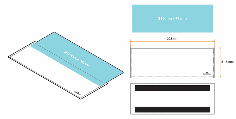 Doté d'une fenêtre transparente pour l'insertion rapide d'une étiquette. Résiste aux déchirures. Achetez Durable 175807 Lot de 50 Porte-étiquettes logistique magnétiques 1/3 A4 paysage Bleu : Porte-étiquettes Simplifiez l'identification de vos produits dans les zones de stockage avec ces pochettes porte-étiquettes ! Les pochettes magnétiques Durable vous permettent une identification rapide des produits ou dossiers. Idéale pour les entrepôts, les usines, salles d'archives ou tout autre lieu de stockage. Les pochettes se fixent sur toutes surfaces métalliques grâce à ces deux bandes... Possibilité de personnaliser les étiquettes sur l'application gratuite DURAPRINT. Porte-étiquette DURABLE bleu pour palettes - Identification efficace Dimensions intérieures : 1/3 A4 paysage (297 x 74 mm). Solution d'identification pour la production et le stockage Pochettes étiquettes Magnétiques Pochettes Adhésives Et Magnétiques - Grand Format Pochette Logistique Possibilité de scanner directement la pochette. Solution de marquage et d'identification pour la production et le stockage de marchandises. S'aimante sur des surfaces métalliques comme des étagères, racks, conteneurs, portes., ., ., Réutilisable.