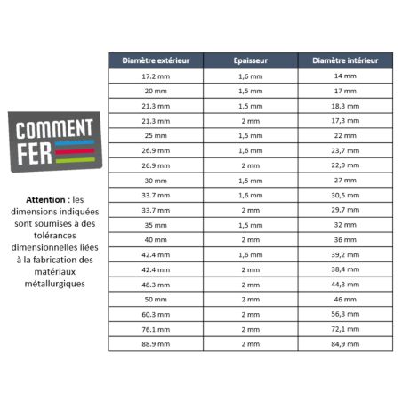 L'acier inoxydable, votre allié pour vos projets à fortes contraintes : l'inox présente une résistance optimale à la chaleur et à l'humidité. Tube Poli Grain 220 Tube Inox 304L Poli Grain 220 - Diamètre 42,4mm X 2mm - Longueur 1m - Pour Décoration Ou Bricolage - Qualité RAPIDOX Tube Soudé 42 ,4mm TUBE 42.4 x 2 mm - INOX 316 POLI BRILLANT à la coupe Une entreprise française à votre écoute pour vos projets Entreprise française Basé à Poitiers (86), toute notre production est effectuée dans notre atelier Toutes les sections de profilés en stock permanent pour vos projets Comment Fer vous propose un très large choix de profilés et dimensions disponibles à l'achat avec livraison. Matériaux de qualité Tous nos produits métallurgiques proviennent de fournisseurs européens Grâce à une expertise éprouvée et un service logistique optimisé, Comment Fer accompagne les artisans, industriels et passionnés du bricolage dans la réussite de leurs réalisations métalliques. Informations concernant la coupe : tolérance dimensionnelle de plus ou moins 3 mm Que ce soit pour des réalisations en métallerie, en construction ou en aménagement, Comment Fer met à disposition des matériaux bruts de haute qualité, déclinés en diverses formes et dimensions. Tube Inox 304l TUBE 42.4 X 2 Mm - Longueur 6 Mètres - INOX 304 GR320 Tube Acier Inoxydable Diamètre 42.4mm épaisseur 2mm Acier La gamme acier de Comment Fer se compose des produits suivants : Tube acier (rond, carré et rectangle) Présentation du produit Tube inox 304L COMMENTFER - diamètre 42,4 mm - épaisseur 2 mm - longueur 1 mètre Offrez à votre projet une résistance exceptionnelle et une finition élégante avec notre Tube inox 304L de diamètre 42,4 mm. Fabriqué en acier inoxydable de haute qualité, ce tube offre une durabilité supérieure et une résistance à la corrosion, ce qui en fait un choix idéal... Inox La gamme inox de Comment Fer se compose des produits suivants : Tube inox (rond, carré et rectangle) Nuance : 1-4307 / 304L - Norme : nf en 10217-7 Tous les produits Comment Fer sont issus de matériaux soigneusement sélectionnés pour garantir résistance et durabilité. Profilé acier (Cornière, T et U) Tube rond inox de dimensions 42,4 mm - épaisseur 2 mm - Poids : 2,03 kg Des petites sections allant de 3 mm de diamètre jusqu'à des tubes et profilés de 150 mm de côté vous trouverez forcément le produit adapté à votre projet ! Barre pleine en inox (rond, carré et plat), Cornière inox, Tôle inox De la tôle en acier aux tubes en aluminium en passant par les poutrelles et caillebotis, chaque produit est conçu pour répondre aux exigences des chantiers et ateliers de bricolage.