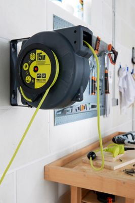 NAIZY Enrouleur de Tuyau à Air Comprimé Automatique - 30 m Raccord 1-4 Pour Montage Mural Poppstar Enrouleur De Câble Automatique 20m + 2m (max. 2500W) Auto-enroulant IP20, Montage Mural Enrouleur Pneumatique Largement utilisé - pour les concessionnaires automobiles, les concessionnaires automobiles, les stations de réparation automobile, les ateliers de montage, les grandes réparations électromécaniques, les chaînes de montage, les chaînes de production, etc. Livraison : 1 x rangement automatique du cordon 1 jeu, chevilles et vis pour le montage (pour béton ou mur) 1 X manuel d'utilisation Avec thermostat de protection automatique contre les surcharges - Lorsque le courant ou la tension nominale est dépassée, le disjoncteur se coupe automatiquement pour protéger l'appareil contre les dommages. L'enrouleur de cordon d'alimentation se rétracte rapidement et en douceur grâce à un mécanisme de rembobinage intelligent à guidage automatique pour éviter les plis et les enchevêtrements L'enrouleur de câble est réinitialisé. MARQUE FORTEC Voltage 230V / 10 A Câble de raccordement 3 m x 1.5 mm2 Longueur du câble 20 m x 1.5 mm2 Type de protection IP 20 Poids 7.3 kg Tambours de câble - Rétractables automatiquement - Longueur : 20 m,Matériau du boîtier : PP,Longueur du câble de connexion : 1,5 m,Type de câble : H05VV-F 3G1,5 mm²,Charge maximale lorsqu'il est déroulé : 2300 W (10 A), Charge maximale lors de l'enroulement : 1000W (4., 35A) L'enrouleur de cordon d'alimentation se rétracte rapidement et en douceur grâce à un mécanisme de rembobinage intelligent à guidage automatique pour éviter les plis et les enchevêtrements.