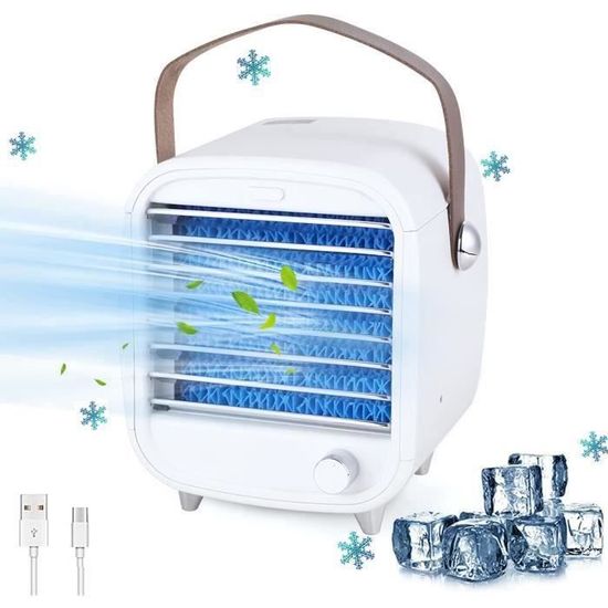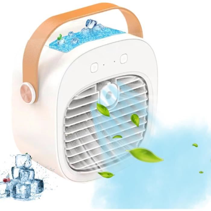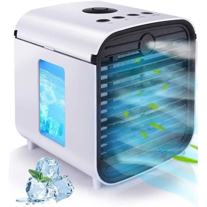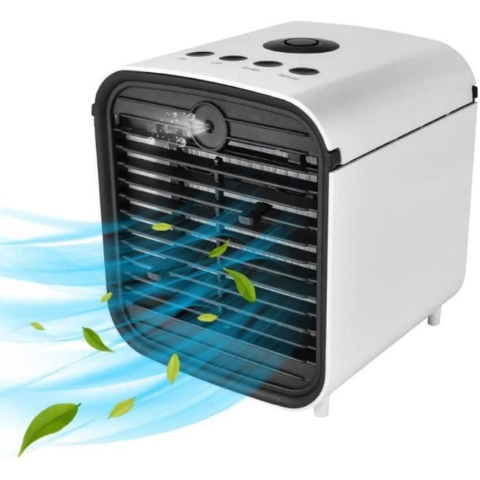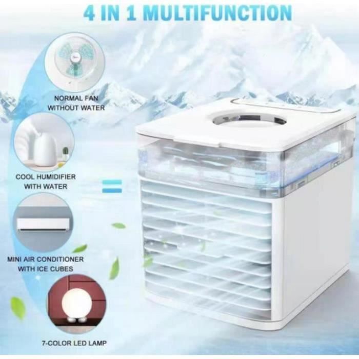 Mini Refroidisseur D'air Personnel Mini Moteur Thermique Mini Climatiseur Portable, 4 En 1 Climatiseur Mobile Silencieux Climatiseur Sans évacuation Climatiseur Silencieux Bureau Canicule ? Ce mini climatiseur mobile vous suit partout ! 5 fonctions en 1 : climatiseur, ventilateur, brumisateur, purificateur d'air et veilleuse LED 5 modes et 3 vitesses de ventilation:]Notre climatiseur portable présente 5 modes de fonctionnement et 3 vitesses de ventilation, y compris le chauffage, le rafraîchissement, la déshumidification, la ventilation et mode nuit qui vous permet d’avoir de température agréable dans toute l'année Cooling Fan Climatiseur Mobile, Mini Refroidisseur D'Air Portable 4 En 1