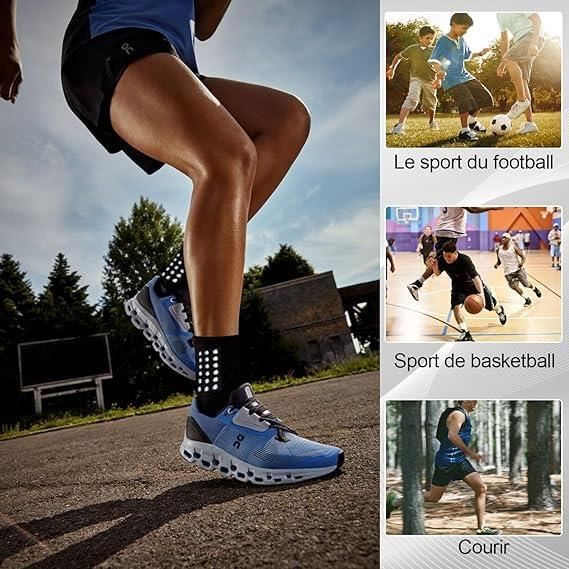 Antidérapant supérieur : la semelle de la chaussette est recouverte de picots en caoutchouc antidérapants, ce qui augmente la friction à l'intérieur de la chaussure. THQAE Lot De 4 Paires De Chaussettes De Football Antidérapantes Pour Adultes, Chaussette antidérapante foot, Chaussettes de foot, Respirantes Pour Le Football, Le Basket-Ball Et La Course à Pied Détails bien pensés : la construction renforcée au niveau des orteils améliore la durabilité ; le design confortable du talon épouse les contours du pied, minimisant ainsi l'inconfort lié aux frottements ; le revers élastique épouse le mollet sans le serrer ni glisser. Football Accessoire Detontek Lot De 3 Paires De Chaussettes De Construction épaissie : le matériau renforcé amortit efficacement les chocs avec le sol pendant l'activité, soulageant la pression sur les pieds et réduisant le risque de blessure pour créer un environnement athlétique confortable pour vos pieds. Chaque commande est livrée avec 4 paires de chaussettes, vous pouvez donc les changer chaque jour. Antidérapantes : Les bandes antidérapantes de la semelle absorbent les chocs et améliorent l'adhérence et le contrôle de la chaussure Acheter 1 paire de chaussettes de football antidérapantes, chaussettes adhérentes pour chaussettes de football antidérapantes, chaussettes de sport de hockey sur gazon pour jeunes hommes adultes et enfants Chaussette antidérapante foot
