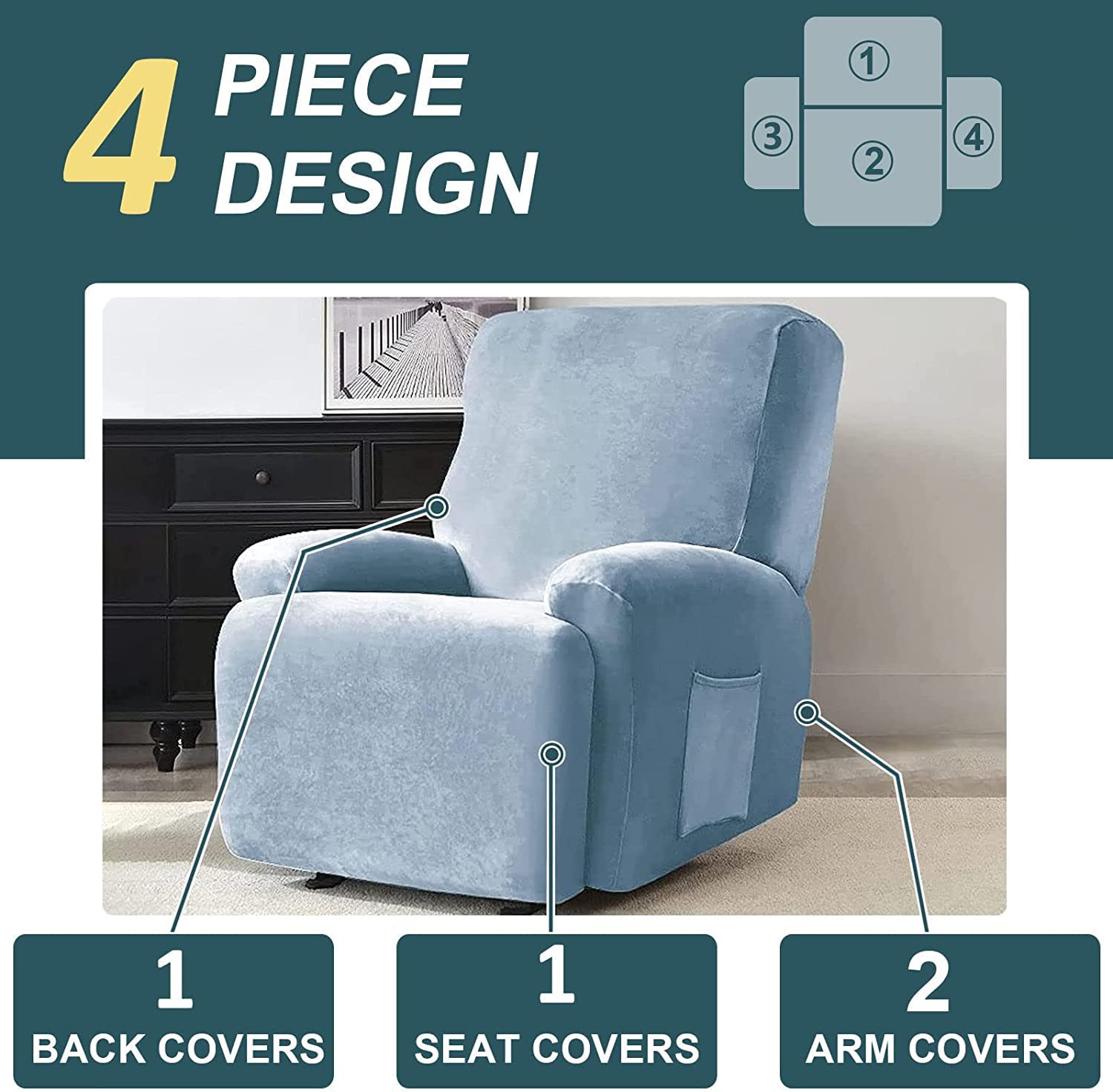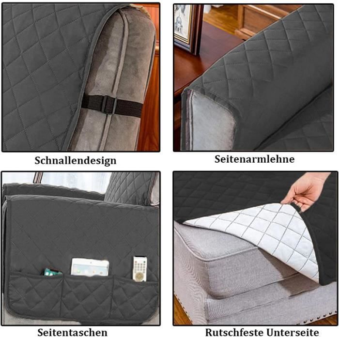 Matériaux de qualité supérieure : cette housse de chaise unique est fabriquée en polyester imprimé de qualité supérieure et en élasthanne. Choisir la bonne housse pour votre fauteuil relax est crucial pour allier confort, protection et esthétique. Que celui-ci soit manuel, électrique, inclinable ou relevable, la housse parfaite vous permettra de prolonger sa durée de vie tout en maintenant une apparence soignée Spécifications: Matière : polyester. Ne pas utiliser d'eau de Javel. Utilisation polyvalente : nos housses de fauteuil relax sont adaptées aux canapés de relaxation avec dossier de 78 cm, hauteur de dossier 48 cm, largeur de base 56 cm, base 83 cm et longueur d'accoudoir 53 cm. Protection complète : la sangle super extensible au bas de chaque housse de chaise longue offre une protection complète et est antidérapante, ce qui évite les taches quotidiennes, les rayures et les dessins d'enfants coquins. Elle dispose d'une excellente élasticité, douce et confortable, respirante et durable, et protège vos meubles des rayures, de la poussière et des poils d'animaux. ᐅ Housses de Fauteuil Relax | Housses Réglables Lavage à l'eau froide en cycle délicat. Dimensions : convient aux canapés avec dossier de 78 cm de large, 48 cm de hauteur de dossier, 56 cm de largeur de base, 83 cm de base et 53 cm de longueur d'accoudoir Caracteristiqu 1., Cette housse de chaise simple est fabriquée en polyester et élasthanne imprimés de qualité supérieure. La housse de fauteuil est lavable en machine et donc facile d'entretien. Donnez un second souffle à votre fauteuil relax avec une housse Vous souhaitez redonner un coup d’éclat à votre fauteuil ? Ne cherchez plus, la solution est sous vos yeux. Une simple housse et le tour est joué ! Il ne vous faudra que quelques instants pour la disposer correctement. Une fois en place, vous pourrez apprécier le renouveau de votre décoration Protection Meuble Anti-poils Hearda Housse De Fauteuil Relax Inclinable Electrique, Jacquard Gris Foncé Housse Pour Canapé Relax, Élastique Housse De Fauteuil Extensible 4 Pièces Avec Poches Housse Extensible Canapé L'ensemble comprend une housse de dossier, une housse de coussin de siège et deux housses d'accoudoir.