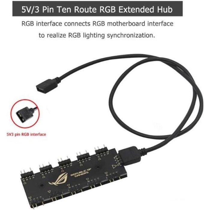 ✔ Contenu : 5 x câbles d'extension ARGB. Argb Controller LANMINGLEL A Cable 5V 1 Female To 2 Male 3 Pin Argb Extension Cable For Expand Computer Pc Argb Fans And Argb Led Series 3 Pack 1 To 2 Rgb Splitter Connecteur femelle 3 broches vers connecteur mâle SM 3 broches, connecte des éclairages ou ventilateurs RGB adressables numériquement à une source unique ✔ Le câble d'extension ARGB vous permet de connecter votre LED ARGB adressable ou votre ventilateur ARGB via un seul connecteur ARGB +5 V à 3 broches de la carte mère. ✔ Fabriqué en matériau durable, robuste et incassable. Ce câble répartiteur LED sépare 1 signal d'alimentation en 3, vous pouvez connecter 2 bandes LED RVB à changement de couleur sur un seul contrôleur. ★[Longue durée de vie] : cuivre pur étamé, protection contre la corrosion, anti-oxydation Câble d'extension répartiteur RGB-ARGB adressable, compatible avec les bandes LED RGB adressables 5050/3528 ou les ventilateurs ARGB. ✔ Connecteur femelle 3 broches vers connecteur mâle SM 3 broches, connecte des éclairages ou ventilateurs RGB adressables numériquement à une source unique. Câble Femelle Vers Mâle Sm Argb CERRXIAN Lot De 3 Câbles Répartiteurs 5 V 3 Broches ARGB, 1 Femelle Vers 2 Ports Mâles 3 Broches HUB Connecteur D'extension Pour Bandes LED ARGB, Ventilateurs ARGB, Etc Câbles Répartisseurs ARGB