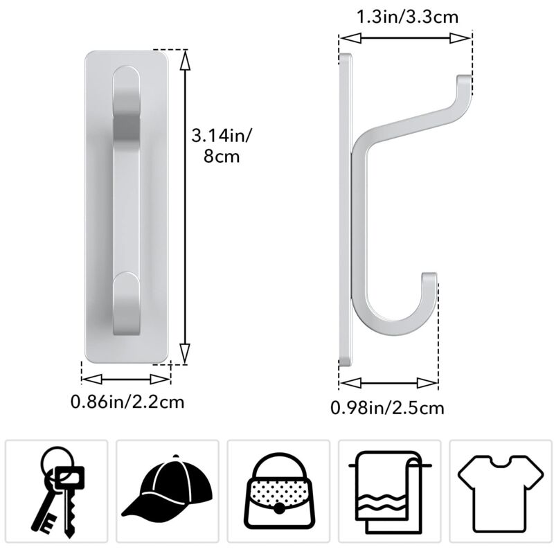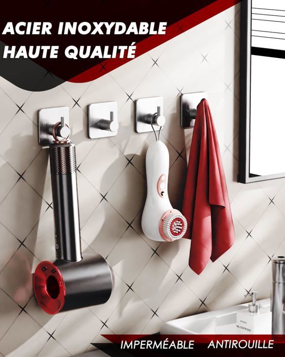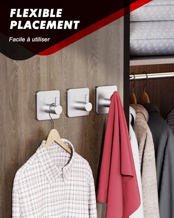 Crochet élégant, beau et stylé, le crochet mural convient pour suspendre des serviettes, des peignoirs, des manteaux, des ustensiles de cuisine, des clés et bien d'autres articles 【INSTALLATION FACILE】Grâce aux adhésifs puissants et étanches, ces porte serviette adhesif se fixent facilement sur des surfaces lisses sans outils ni perçage. Crochet Serviette Auxmir 6 Pièces Crochet Adhésif Mural, Porte Serviette Salle De Bains, Accrochet Torchon En Acier Inox Étanche Cuisine, Crochet Autocollant Antirouille Sans Percer, Argent Support 10 Kg Par Crochet Lot de 6 crochet adhesif mural salle de bain en acier inoxydable, porte serviette adhesif sans perçage, résistant, étanche et idéal comme accroche serviette salle de bain. Parfait pour accrocher serviettes, peignoirs, accessoires de cuisine ou clés, offrant une tenue ferme même dans un environnement humide. 【UTILISATION POLYVALENTE】Ces accroche serviette salle de bain sans perçage conviennent pour salle de bain, cuisine, chambre ou bureau. 𝐈𝐧𝐬𝐭𝐚𝐥𝐥𝐚𝐭𝐢𝐨𝐧 𝐅𝐚𝐜𝐢𝐥𝐞] S'installe rapidement sans clous ni trous grâce au ruban adhésif au dos 6 Pièces Crochet Adhésif, Crochet Mural Salle de Bains En Acier Inox 【MATÉRIAU DE HAUTE QUALITÉ】Fabriqués en acier inoxydable brossé, ces crochet salle de bain sans percage sont résistants à la rouille, à la corrosion et faciles à nettoyer. Un choix idéal pour éviter d’abîmer vos murs ou carreaux. Idéal comme accroche serviette salle de bain durable pour cuisine et salle de bain.