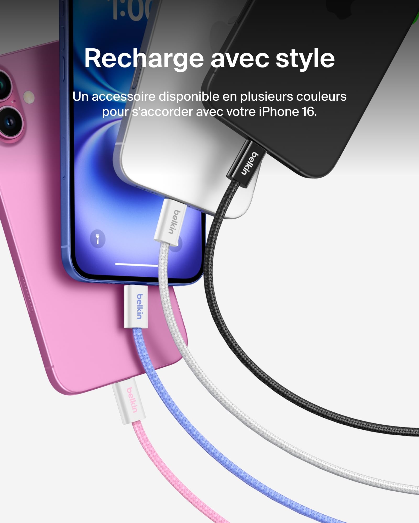 Il a été testé pour sa résistance à plus de 25 000 flexions et à plus de 10 000 branchements et débranchements**. PRODUIT DURABLE SOUS GARANTIE 2 ANS : l'emballage du câble USB-C Belkin BoostCharge est dépourvu de plastique. ), Apple AirPods Pro (2e gén. Câble à gaine tressée USB-C vers USB-C (240 W) | FR DURABILITÉ SUPÉRIEURE : doux au toucher et souple, notre câble Belkin BoostCharge est doté d'une gaine tressée (extérieur en PVC et intérieur en nylon) et de connecteurs ABS extrêmement durables. ), MacBook Pro, MacBook Air, MacBook Air 15 M2 (2023), iPad mini (6e gén. Pour comparaison, un câble conventionnel en PVC ne résiste quant à lui qu'à 1 000 flexions. Profitez d’une recharge rapide, jusqu’à 50 % en moins de 36 minutes grâce à ces 2 câbles USB-C vers USB-C solides, avec gaine tressée en nylon, conçus par Belkin Ils sont certifiés conformes USB-IF . Ces câbles résistent à plus de 25 000 flexions et à plus de 10 000 branchements / débranchements. Il vous offre une recharge et un transfert de données rapides et fiables. OPTIONS DE LONGUEURS ET DE COULEURS : ce câble USB-C de 1;5 m est disponible en plusieurs couleurs différentes, ce qui le rend idéal pour l'accorder avec le style épuré et élégant de tous les modèles de l'iPhone 16., Ce câble est disponible en noir, en blanc, en vert, en rose et en bleu. Il est aussi compatible avec CarPlay d’Apple et Android Auto. Belkin est la marque leader du marché des accessoires qui offre des solutions de haute qualité et innovantes depuis plus de 40 ans. Testés pour résister à plus de 25 000 plis, ces câbles USB-C à gaine tressée en nylon sont durables. Câble USB-C vers USB-C et Lightning - Non spécifié - 1,80 m - Quick Les résultats réels peuvent différer. Utilisez-les partout, dès que vous avez besoin de synchroniser de la musique, vos photos, des données, ou de recharger vos appareils. ACCESSOIRE FACILE À TRANSPORTER ET À RANGER : emportez ce câble de recharge USB-C partout avec vous. Emballage dépourvu de matériau plastique Garantie 2 ans Contenu de l'emballage : 2 câbles USB-C vers USB-C BoostCharge (1,5 m) Câble Durable 25000 Flexions Belkin Pack De 2 Câbles USB-A Vers USB-C Avec Gaine Tressée (1,5 M Cable Usb C Vers Usb C ), iPad Pro 12,9” (3e gén. * La capacité PD de 60 W permet de recharger un iPhone 16 de zéro à 50 % en 25 minutes lorsqu’il est utilisé avec un chargeur de 65 W. COMPATIBILITÉ UNIVERSELLE : ce câble fonctionne avec l’iPhone 15 (ou version ultérieure), Samsung S25 (ou version antérieure), iPad Pro, MacBook, Chromebook ou autre appareil USB-C.