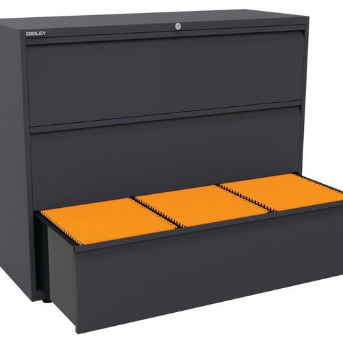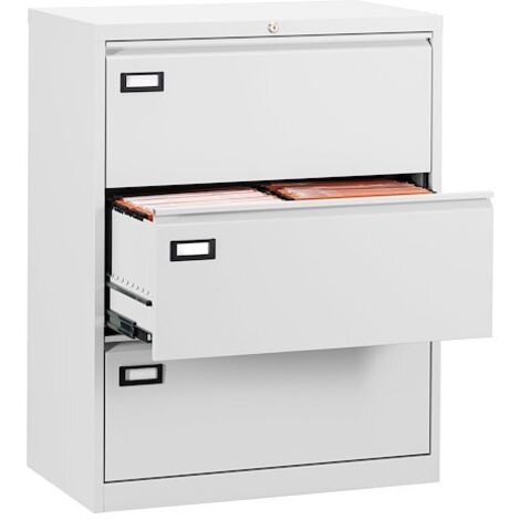 Easy / Crédence à dossiers suspendus H100 x L120 cm Dimensions utiles d’un tiroir : 24,5 x 112., 4 x 39 cm. Dossiers Suspendus Colonne De Rangement En Acier 3 Grands Tiroirs Gris Clair Pierre Henry Crédence Gris Clair Fabriquée en tôle d’acier 8/10e, finition époxy grainé. 3 couleurs au choix : blanc, gris clair et noir., Livré monté. Système d'ouverture sécurisé., Robuste. 1- Le classeur crédence à tiroirs possède une capacité de stockage de 30 % supérieure au classeur à tiroirs. Ce meuble crédence permet d'avoir devant soi 2 ou 3 rangées de dossiers classés. C'est le meuble idéal pour le classement de dossiers suspendus à consultation fréquente Caisson hauteur bureau professionnel P60 cm en métal 3 tiroirs Gris Peut contenir jusqu'à 160 dossiers suspendus par tiroir. Poids maximum supporté par tiroir : capacité 40 kg. Système anti-basculement, seul 1 tiroir s'ouvre à la fois.
