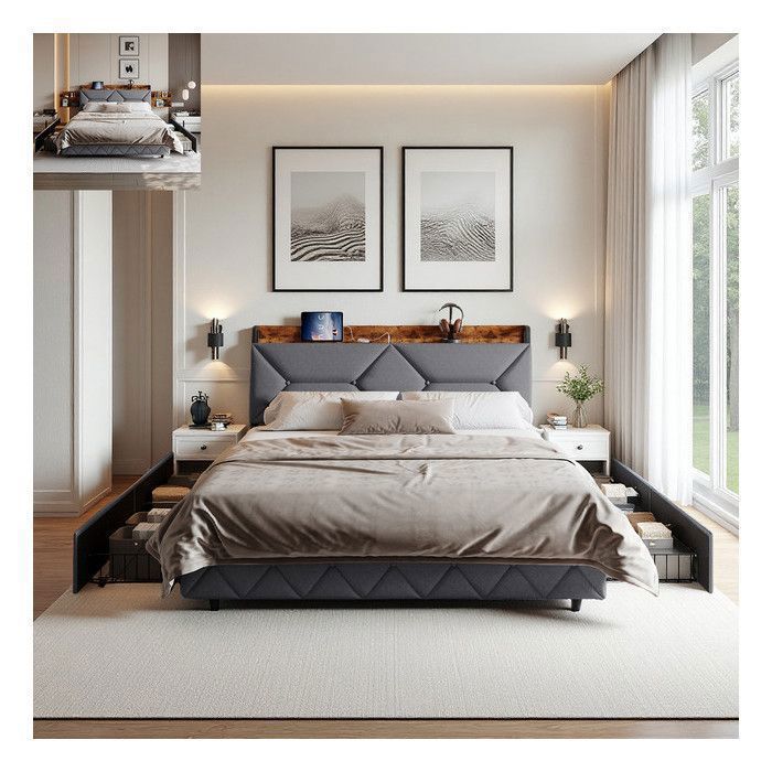 Lit 160x200 Avec Rangement Lit Coffre 160x200 Cm Avec Sommier U00e0 Lattes, Lits Double Rembourru00e9 160x200 Avec 2 Tiroirs, Lits Capitonnu00e9 Avec Rangement, Tu00eate De Lit Avec Lumiu00e8re Tete De Lit 160x200 Ce design aide à protéger le matelas et à prolonger sa durée de vie Taille. 160x200 cm · Dimensions du produit. 2,05L x 1,6l x 1,07H mètres · Couleur. Gris B · Composants inclus. Stockage hydraulique, Tête de lit · Marque Sommier à Lattes, Tête de Lits Rembourré, Lits 2 Personnes avec Rangement pour Adultes et Ado, Velours. 5,0 sur 5 étoiles 3. 1 offre à partir de 224,99 Le lit double convainc par sa bordure élégante en fibre dorée et sa surpiqûre de qualité supérieure en tissu velours. Montage facile : avec les pièces marquées, les instructions détaillées et l'outil fourni, vous pouvez effectuer le montage rapidement selon les instructions (français non garanti). Lit 160x200 Avec Soier, Fonction de Charge USB, Coffre de Rangeent La tête de lit haute aux accents dorés assure un aspect élégant et offre un soutien dorsal optimal lors de la lecture ou de la détente au lit Détails du produit : Couleur : beige/noir Matériau : velours + MDF + métal Dimensions totales (L x l x H) : 212 x 145/165 x 107 cm. Remarques : Assurez-vous que toutes les pièces et vis sont bien fixées avant utilisation. Design élégant : ajoutez une touche d'élégance à votre chambre à coucher avec notre lit de luxe beige de 160 x 200 cm dans un style européen moderne. Le matelas n'est pas inclus. Espace de rangement caché : grâce à la fonction de levage hydraulique, le sommier à lattes peut être facilement soulevé, de sorte que vous pouvez ranger les objets rarement utilisés tels que la valise, la literie et les vêtements hors saison sous le lit à sommier tapissier de 160 x 200 cm. Parfait comme lit d'adolescent de 160 x 200 cm ou pour une décoration élégante de chambre à coucher Épaisseur de matelas recommandée : ≤ 26 cm.