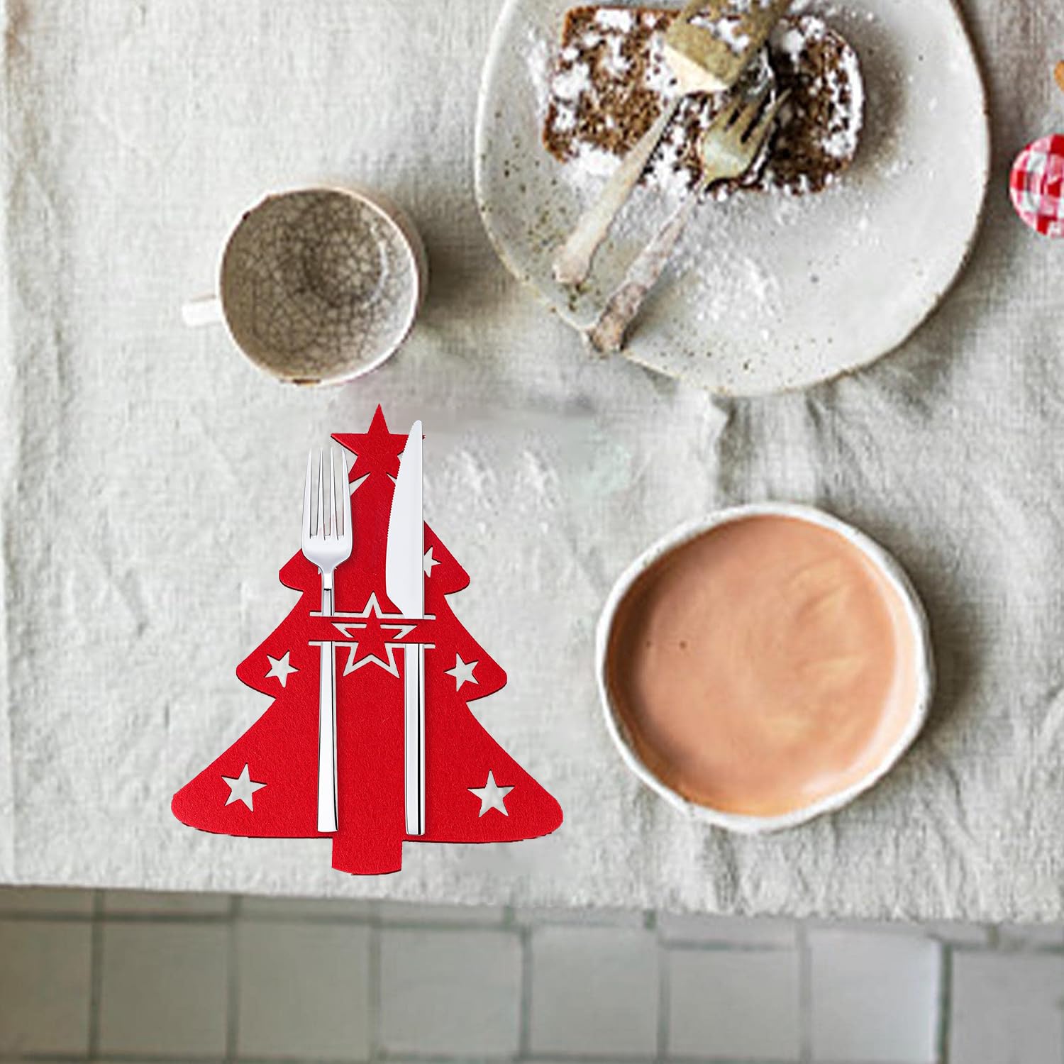 Éléments de Noël: Porte couvert feutrine noël a une forme d'arbre de Noël exquise décorée d'étoiles, de flocons de neige et de rennes, porte également l'inscription MERRY CHRISTMAS‘ pour créer une atmosphère joyeuse de vacances de Noël pour vous Caractéristiques du Produit: Nom: porte-couverts de Noël en feutre Matériau: feutre Dimensions: 20 x 18 cm Couleur: rouge JYNXOR 12 Pièces Porte Couverts en Feutre de Noël, Sac à Couverts Noël Décorations,Porte Couvert de Noel,Couteaux Fourchettes Cuillères Vaisselle Sacs à Couverts pour Table de Fête Décoration de Noël Matériau en feutre de haute qualité:Le Porte Couverts Noël est fabriqué en feutre de haute qualité, doux, confortable et chaud au toucher, En même temps, le feutre est également facile à nettoyer, il suffit de le tremper dans de eau froide et de le laver àmain, Le Forfait Comprend:Chaque ensemble de Porte Couverts en Feutre de Noël contient 12 sacs, le sac à couverts mesure 15 x 15... Matériau: Notre range couvert noel est fabriqué en feutre, résistant à la chaleur, pas facile à déformer, léger et durable, de sorte que vous pouvez être sûr que vous pouvez y mettre votre vaisselle, idéal pour la décoration de la vaisselle de Noël Deco Table De Noel 12 Pièces Porte-Couverts De Lapin De Pâques Sac Pochette À Couverts Deco De Noel Pour Table Décorations de Noël: Le sac à couverts en feutre de Noël est la décoration de table de Noël idéale. Ces sacs à couverts de Noël peuvent non seulement être utilisés pour poser la vaisselle, mais servent également de petite décoration sur la table à manger Porte Couverts Noël 12 Pièces Porte Couverts En Feutre De Noël, Sac à Couverts Noël Sac à Couverts Sapin De Noël Sacs à couverts pour sapin de Noël, mignon et créatif, plein d'atmosphère de Noël hivernale pour votre table à manger, la décoration délicate et le rituel suffisent pour vous donner appétit à vous et à votre famille pour un repas de Noël joyeux., Astuce: 1., Les mesures étant prises à la main, les tailles indiquées peuvent varier légèrement., 2., La couleur de l'article peut varier de celle de la photo, en fonction des paramètres d'affichage et de luminosité de votre ordinateur. Description du produit MOLENCO 12 Pièces Porte Couverts Noel, Porte Couverts en Feutre de Noël, pour Couteaux, Fourchettes et Cuillères, Fêtes et Repas de Fête Caractéristiques du Produit: 1., 12 sacs à couverts pour sapin de Noël. Le sac à couverts porte également l'inscription MERRY CHRISTMAS, ce qui représente une bénédiction chaleureuse.
