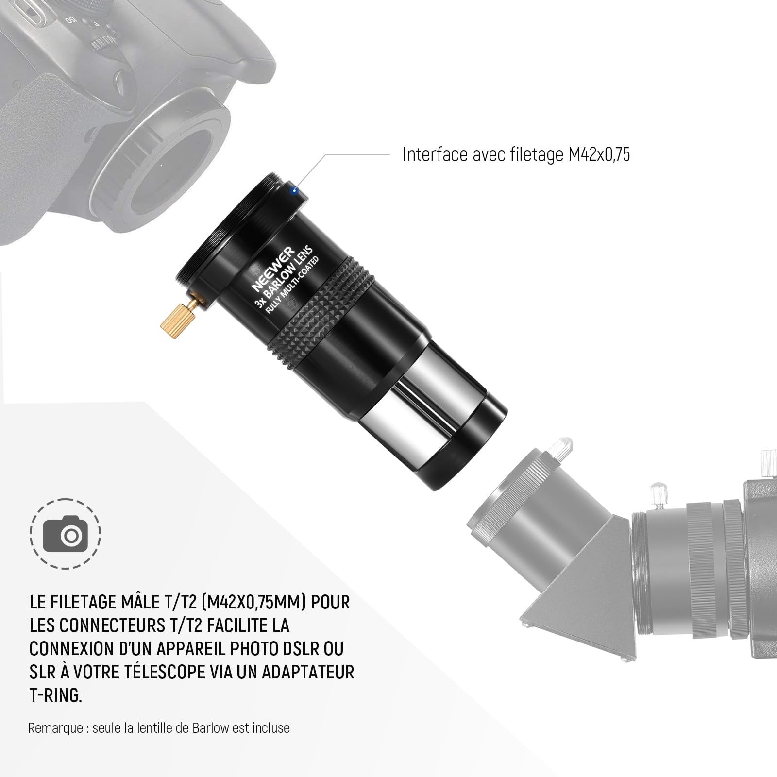 Une marge d'erreur de mesure de +/- 1 à 3 cm est possible., Matériau : aluminium. Remarque : la couleur de l'article peut varier légèrement en fonction de la luminosité et des paramètres d'affichage. Revêtement : lentille multicouche., Grossissement : 2X., Adaptateur : 1,25 pouces. Lentille Barlow 2x Kit Oculaires Télescope 4-10-25mm + Barlow 2x - Pour Astronomes Amateurs Oculaires Télescope Plossl Application : Compatible avec tous les types de télescopes, réflecteurs, réfracteurs, pour l'observation des amas d'étoiles, de la lune, des planètes et autres corps célestes. Lentille de Barlow TS Optics 2x 31,7mm Accessoire Télescope Observation Lune Lentille De Barlow Photo 2x Sky Optic Prisme Toit Observation étoiles Kepler Acheter Barlow 2.5x 1.25 2.5x en ligne