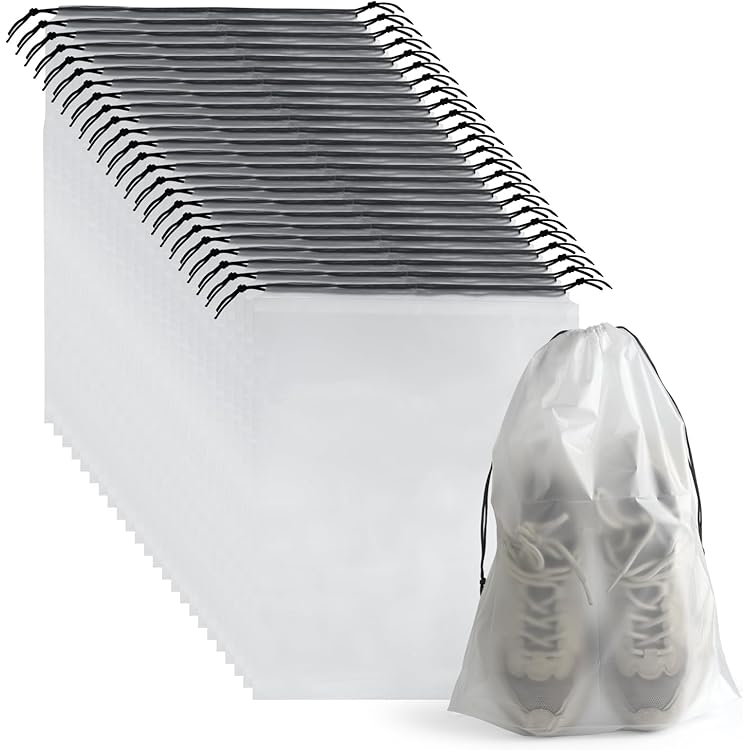 Sacs en PVC transparents Organisateur de voyage Sac de maquillage clai Pochettes Chaussures Transparentes 26 Sacs à Chaussures Transparents Pour Voyage, Imperméables Sacs étanches à Cordon Conçus pour les voyages, ces sacs à chaussures sont petits et légers, ce qui en fait un ajout pratique à vos essentiels de voyage Sacs à chaussures de voyage transparents avec cordon de serrage, pochettes de rangement étanches à la poussière, accessoires de voyage, sac de rangement pour chaussures, pour femmes et hommes, essentiels de voyage portables Couleur : Transparent Dimensions : 30 × 40 cm Matériau : PE Contenu de l’emballage : 26 sacs à chaussures de voyage Remarques : 1 : Tenir hors de portée des enfants de moins de 3 ans et sous la surveillance d’un adulte. Nos sacs à chaussures de voyage mesurent environ 30 x 40 cm, ce qui permet de ranger divers types de chaussures, vêtements et autres essentiels de voyage. Lot de 4 Sacs à Chaussures de Voyage pour Femme, Sacs à Chaussures avec Cordon de Serrage imperméables et Anti-poussière avec fenêtre Transparente pour Une Utilisation Quotidienne et Les Voyages Matériau de qualité supérieure : nos sacs à chaussures de voyage transparents sont fabriqués en matériau TE épais, léger, imperméable et résistant à la poussière, portable et robuste, et la conception des sacs à chaussures transparents vous permet de voir facilement les chaussures à l'intérieur sans ouvrir le sac. PLULON Costume de coccinelle avec accessoires pour enfants, adorabl... Accessoire de voyage idéal pour hommes et femmes, ces sacs à chaussures de voyage durables gardent vos chaussures organisées et séparées des autres articles de vos bagages pendant votre voyage. Contenu : 26 sacs à chaussures transparents de voyage.