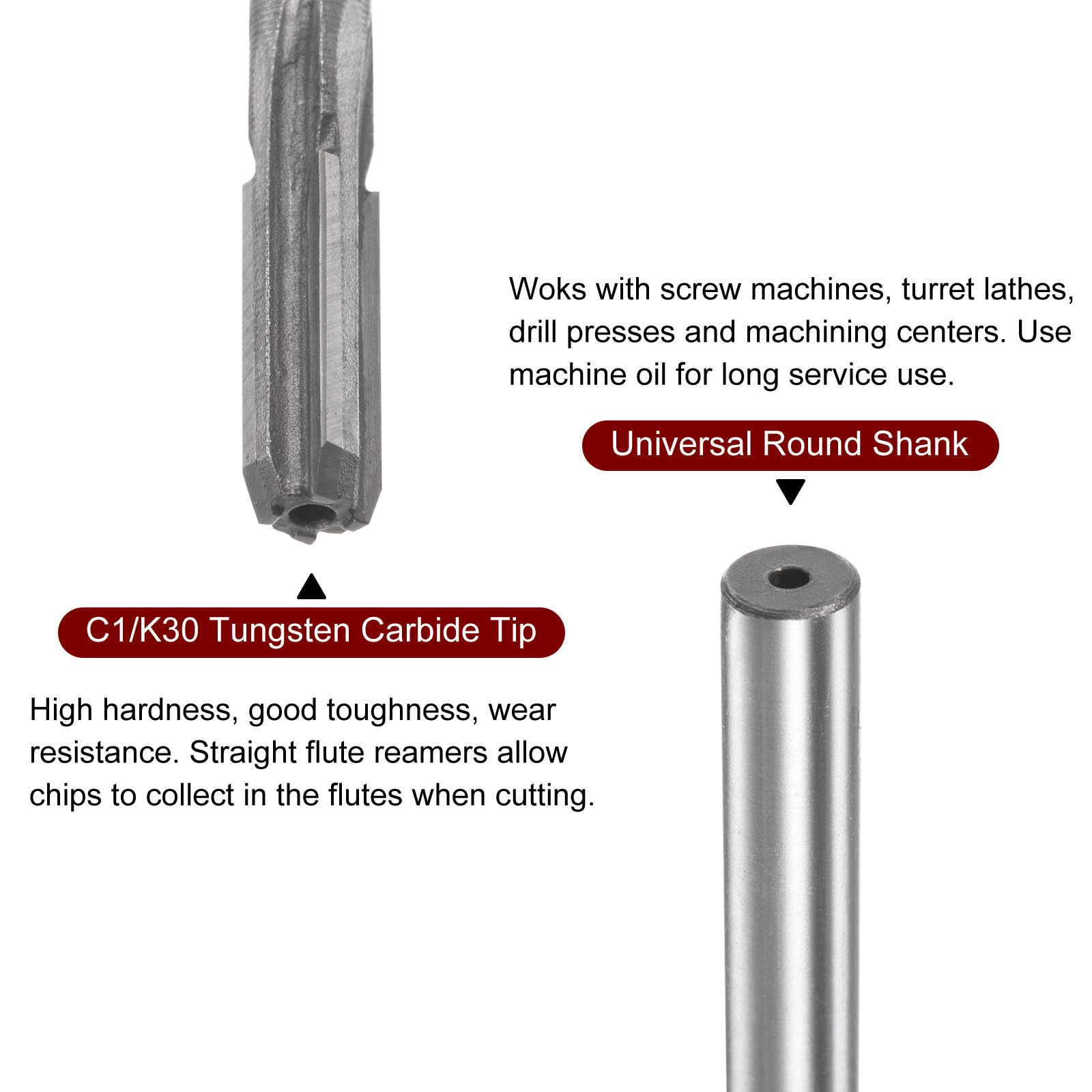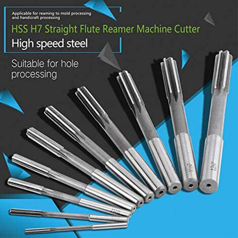 Alésoirs Mandrin CoCud Serrage Alésoirs Jeu, 4mm 5mm 6mm 8mm 10mm 12mm Diamètre H7 Tolérance H7 Usinage Précision ★ Flûtes droites --- Les outils à flûte droite permettent aux copeaux de se collecter dans les flûtes. Matériau : l'outil en acier rapide combine dureté, ténacité et résistance à l'usure, adapté aux applications générales. Application : couper et enlever la fine couche de métal sur la surface du trou usiné, principalement pour améliorer la précision du trou et réduire la rugosité de la surface Alésoir de mandrin: taille: 3mm, 4mm, 5mm, 6mm, 7mm, 8mm, 9mm, 10mm; tolérance: H7. Comprend uniquement le substrat de base sans aucun revêtement supplémentaire, bon pour une large gamme d'applications Pour obtenir des trous de meilleure qualité et prolonger la durabilité des alésoirs, assurez-vous d'ajouter l'huile de coupe appropriée. Alésage de précision pour l'acier inoxydable, l'aluminium, l'acier allié, la fonte, le cuivre, l'acier à outils, le plastique et le bois. Lot de 8 alésoirs de mandrin HSS 3/4/5/6/7/8/9/10 mm pour usinage d'alésage installé dans une machine de forage et de fraisage ★ Applications larges --- Utilisées couramment pour les coupes légères, les travaux de réparation, l'enlèvement de matière ou simplement pour agrandir les trous. Alésage de précision pour l'acier inoxydable, l'aluminium, l'acier allié, la fonte, le cuivre, l'acier à outils, le plastique et le bois, etc. Dans une variété de systèmes de maintien d'outils, la tige ronde universelle peut être utilisée. L’huile de coupe est lubrifiante, refroidissante et antiadhésive. Les trous usinés par l'alésoir ont une taille et une forme précises. ★ Taille de la fraise étagée --- Diamètre de coupe : 3mm 4mm 5mm 6mm 7mm 8mm 9mm 10mm 11mm 12mm ; Tolérance : H7 L'angle de coupe doit être vertical et stable de 90 degrés. --- Dotés d'une résistance à l'usure exceptionnelle, d'une bonne ténacité et d'une haute dureté, les alésoirs à mandrin en acier rapide sont disponibles.