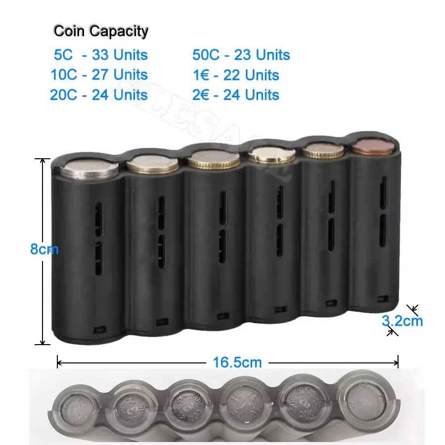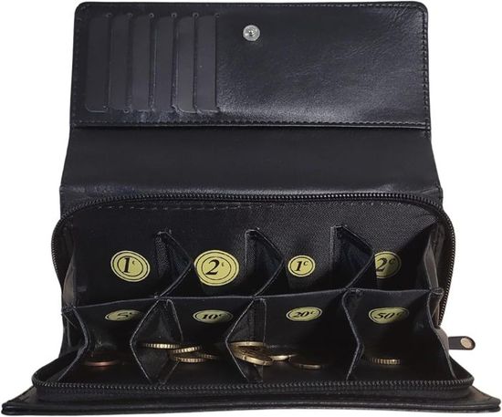 Ce monnayeur distributeur des 6 principales pièces d'euro de fabrication Européenne CEE, noir à poussoir par ressort permet d'insérer et de distribuer les pièces de 0,05€ 0.10€, 0.20€, 0.50€, 1€ et 2€. Entièrement rempli ce distributeur et organisateur de monnaie contiendra un total de 98.50 De plus, l'argent est protégé par un couvercle avec fermeture en tissu autocollant, offrant sécurité et accès facile à tout moment. Porte Monnaie Trieur Euros Distributeur Pièces Monnayeur Ceinture 6 Pièces Euro - Pour Serveurs Et Taxis Porte-monnaie Distributeur Porte-monnaie Professionnel Distributeur Pièces Découvrez le portefeuille en toile noire, parfait pour gérer vos pièces et billets en euro. Pour plus de commodité, il offre également quatre compartiments spacieux pour les billets, offrant suffisamment d'espace pour organiser vos billets en euro de manière ordonnée. Comprend un portefeuille professionnel et un porte-monnaie. Conception Pratique pour Professionnels: Spécialement conçu pour les professionnels en déplacement tels que les serveurs, les chauffeurs de taxi et les vendeurs ambulants, ce porte-monnaie ceinture permet un accès rapide et facile aux pièces euro. Distributeur de Pièces Intégré: Équipé d'un distributeur de pièces efficace, ce porte-monnaie facilite les transactions en offrant une... effektivo Portefeuille avec Distributeur de pièces et Ceinture de Avec sa ceinture réglable, vous pouvez l'attacher confortablement à votre taille, vous permettant d'avoir les mains libres pour travailler efficacement. Ce système, avec un mécanisme à ressort, facilite l'extraction des pièces, et les indicateurs de quantité sur chaque compartiment vous permettent de toujours savoir combien de pièces vous avez disponibles. Idéal pour les caissiers, les comptables, les magasins, les serveurs et les collectionneurs, ce portefeuille est fabriqué avec une toile noire robuste qui garantit durabilité et style.