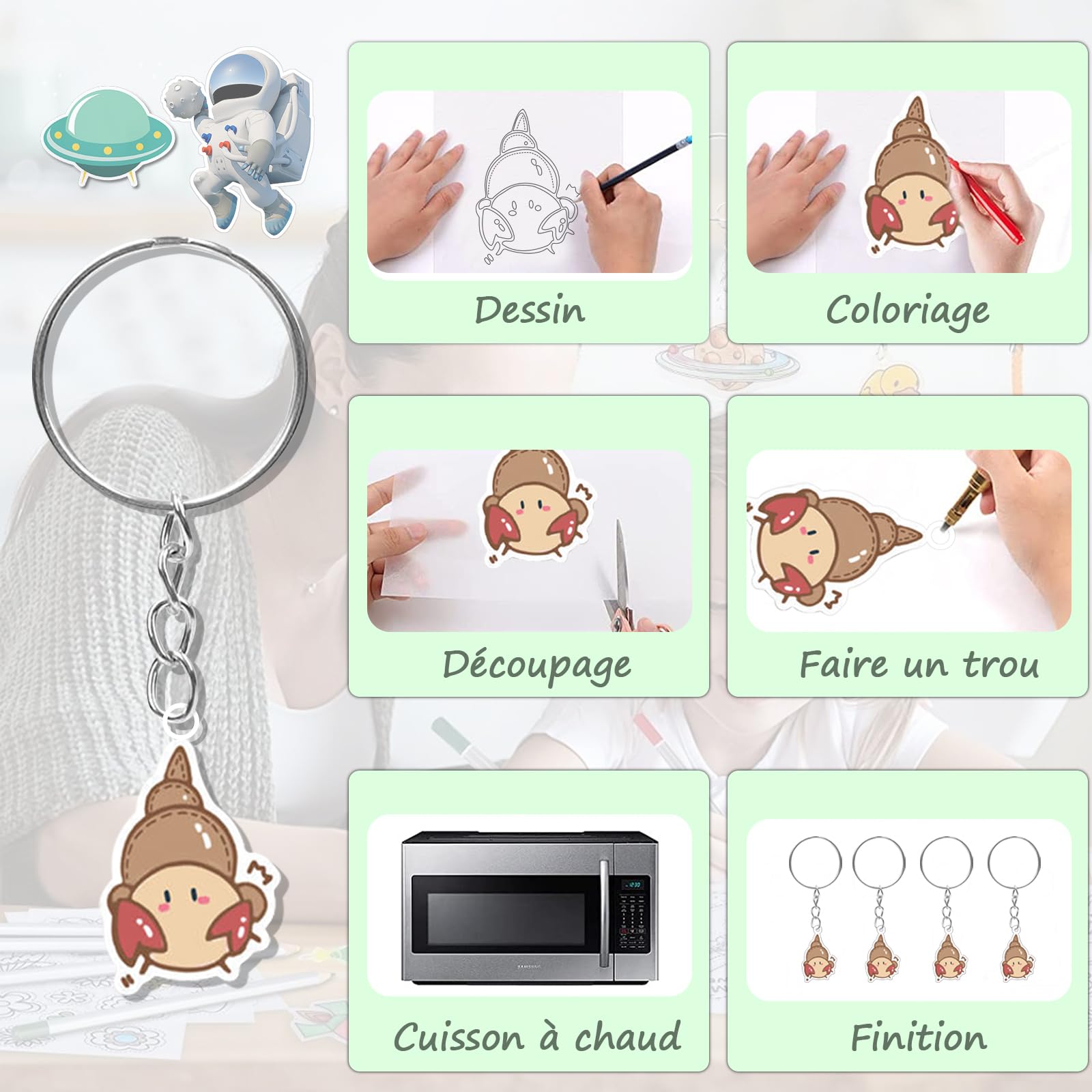 【Kit de 30 feuilles pour répondre à divers besoins】Ce kit contient 30 feuilles de film rétractable, idéal pour de nombreux projets DIY ou à partager en famille ou entre amis. L'autre face brillante offre un aspect transparent et raffiné après rétraction. Préchauffez le four à 160-170 °C pendant environ 2 minutes pour terminer le rétrécissement, ce qui le rend idéal pour la production en série. Utilisez le four pour fabriquer des porte-clés ou un pistolet thermique pour affiner la forme des pendentifs. Kit Créatif Four Kit Plastique Fou 30 Feuilles + 30 Porte-clés Spécifications Matériau : BOPS Dimensions : 29 x 20 cm Couleur : Translucide Quantité : 30 feuilles Poids : 450 g Contenu : 30 feuilles de film rétractable translucide DIY Attention 1., Le film rétractable ne peut pas être imprimé sur imprimante et convient uniquement à la peinture à la main., 2., Lors de la cuisson au four, il est recommandé de placer le film sur une plaque résistante à la chaleur afin d'éviter tout contact direct avec la sole., 3., Lors de l'utilisation d'un pistolet thermique, déplacez le film à vitesse constante pour éviter toute surchauffe et toute déformation., 4., Les enfants doivent être accompagnés d'un adulte pour manipuler le film afin d'éviter les brûlures. Instructions : Dessinez un motif sur la surface mate avec un marqueur ou un crayon de couleur, puis découpez le contour. Le plastique fou, autrement qualifié de "plastique dingue" ou "papier magique", est un matériau de création se présentant sous formes de feuilles. Une fois passées au four, les formes rétrécissent, se solidifient et se transforment en objet décoratif Les produits finis peuvent être offerts en cadeau à vos enfants et amis. Après chauffage, il rétrécit progressivement et ne se déforme ni ne se fissure soudainement. Le format A4 29 x 20 cm permet une découpe flexible, permettant de réaliser des boucles d'oreilles de la taille d'un ongle ou de grands pendentifs de 10 cm de large. Une fois refroidi, assemblez le produit fini avec un cordon ou un porte-clés. Il rétracte de manière stable après chauffage et résiste à la déformation et aux fissures. Ces deux méthodes ne nécessitent aucune technique complexe. Il suffit de suivre les étapes et même un débutant peut créer un produit fini en 10 minutes. Dimensions : 20 x 30 cm Le plastique magique se présente sous la forme de feuilles avec une face lisse et une face rugueuse sur laquelle on dessine. On le dit « magique » parce que sous l'effet de la chaleur, ces feuilles rétrécissent 2.5 fois leur taille initiale et s'épaississent 7 fois pour se transformer en un petit objet en plastique... Cela évite les réapprovisionnements fréquents et réduit les interruptions. s Smowo® Lot De 20 Films Plastique Fou Magique A4 Mat - Papier Fou Thermorétractable Transparent Pour Bricolage Porte-clés Personnalisé Décorations créatives : Réalisez des mini pendentifs animaux ou des décorations de Noël pour décorer votre maison ou votre sapin de Noël, pour éviter les décorations sans personnalité. Cadeaux faits main : Marque-pages gravés ou boucles d'oreilles personnalisées pour vos proches, pour éviter les cadeaux trop monotones et sans fioritures. Les débutants comme les passionnés expérimentés pourront profiter d'une expression créative et d'un esthétisme exceptionnel. Le produit fini a une longue durée de vie et peut être conservé longtemps. Elle offre une forte adhérence aux marqueurs et crayons de couleur, garantissant des lignes nettes et lisses sans bavures, permettant même aux débutants de créer des motifs soignés. Préchauffez le four à 160-170 °C, placez le film rétractable découpé au four et chauffez pendant environ 2 minutes jusqu'à ce qu'il ne rétrécisse plus. 【Matériau BOPS : sécurité et qualité supérieure】Le papier fou plastic fou est fabriqué en plastique BOPS, à la texture translucide et transparente. Parfait pour les travaux manuels parents-enfants, les réunions entre amis proches ou les salles de classe créatives, ce produit encourage l'imagination et cultive les compétences pratiques. C'est à la fois un outil créatif et un excellent moyen d'exprimer vos sentiments. La surface brillante, après chauffage, crée une texture translucide, donnant aux produits finis comme les porte-clés et les pendentifs un éclat raffiné, créant un effet visuel plus riche qu'un film rétractable uni standard. Veuillez tenir compte des dimensions du dessin lors du dessin. Sa double surface permet de peindre et de réaliser des finitions brillantes.