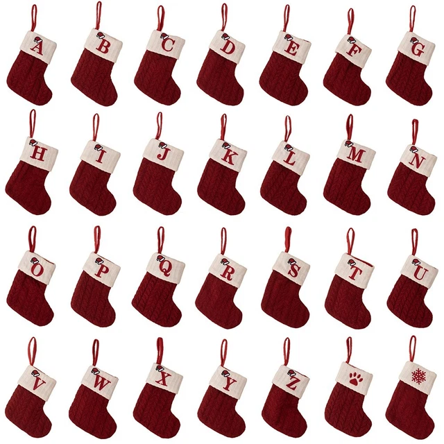 Chaussettes De Noël, Lettres De L'alphabet Flocon De Neige, Bas Tricotés, Pendentif D'arbre De Noël, Décoration Pour La Maison, Cadeau De Noël 2024