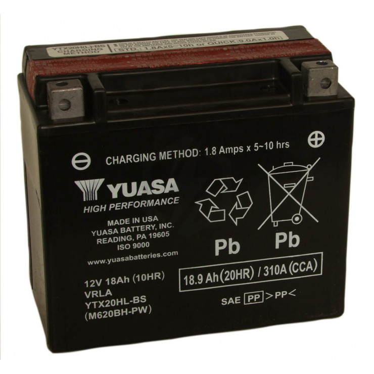 Batterie Yuasa YTX20L-BS - SLA AGM12V 18,9 Ah prête à l'emploi - Pièces Electrique sur La Bécanerie Batterie moto YUASA YTX20CH-BS dans votre boutique Numéros de pièce fabricant équivalents : HARLEY-DAVIDSON 65989-97A La batterie YTX20L-BS VRLA (plomb-acide à régulation par soupape) est idéale pour les personnes qui ont mieux à faire que d'entretenir une batterie ! La batterie YTX20L-BS VRLA Yuasa scellée de façon permanente n'a jamais besoin d'être remplie Ytx20l Bs Lithium Battery Batería De Moto YUASA YTX20L-BS Batterie Moto Harley-davidson 65989-97A Ytx20l_bs_e01152_065209